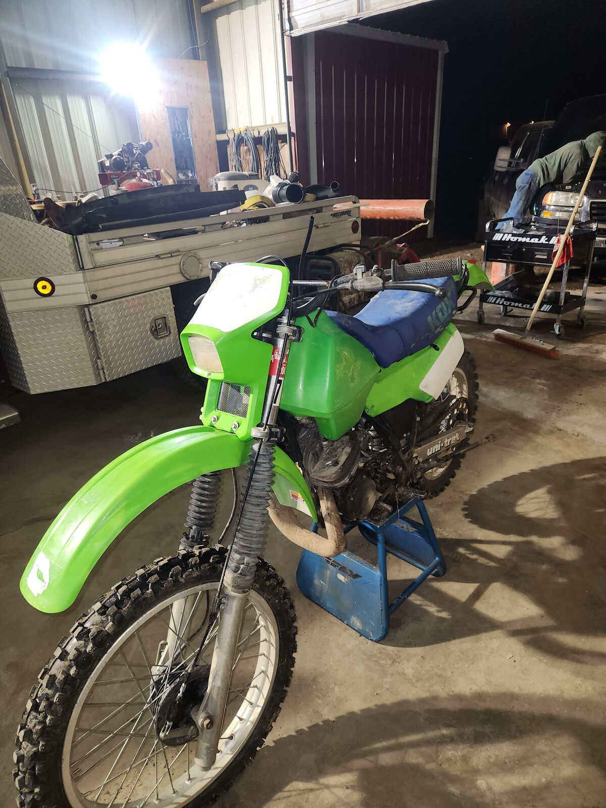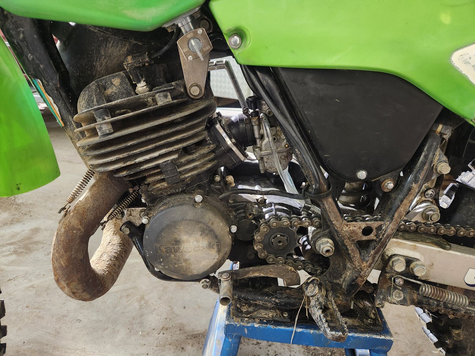 Got it running and driving good. Rebuilt top end. Replaced all seals including the crank seal. Plastics are original. Its a little rough around the edges but overerall a decent bike. Runs amazing. Putting a seat on it in a week