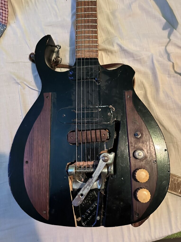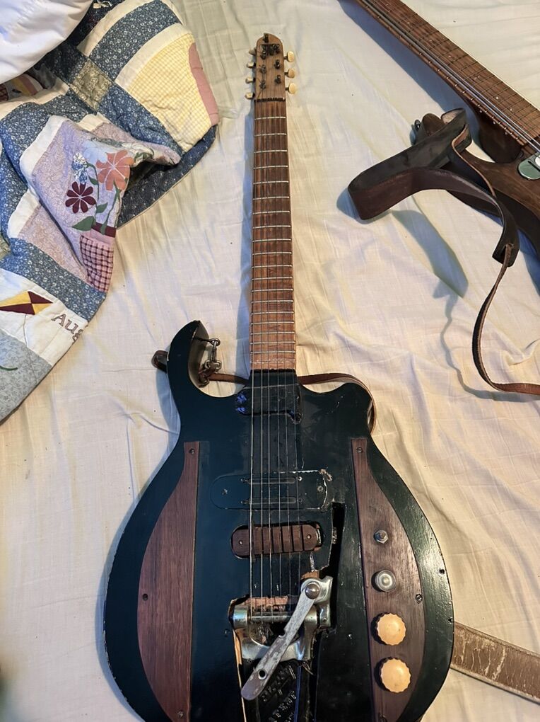 Once in a lifetime opportunity to own two entirely unique guitars. One is an 8 string and the other was built as a 7 string but is currently setup as a 6 string. They both have original 50’s Bigsby’s vibratos and 50’s dearmond pickups. I believe the wood accents are brazillian rosewood. Original tuners and knobs also.