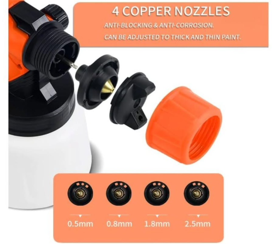 Zelle4 Copper Nozzles & 3 Spray Patterns, 650W HVLP Electric Spray Gun with 900ml Container, Ideal Spray Gun for Furniture, Cabinets, Fences, Decks, Walls.(doesnt come with battery,suitable for MAKITA&DeWaIT 20V MAX XR DCB203, DCB205 xr Slider lithium batteries)