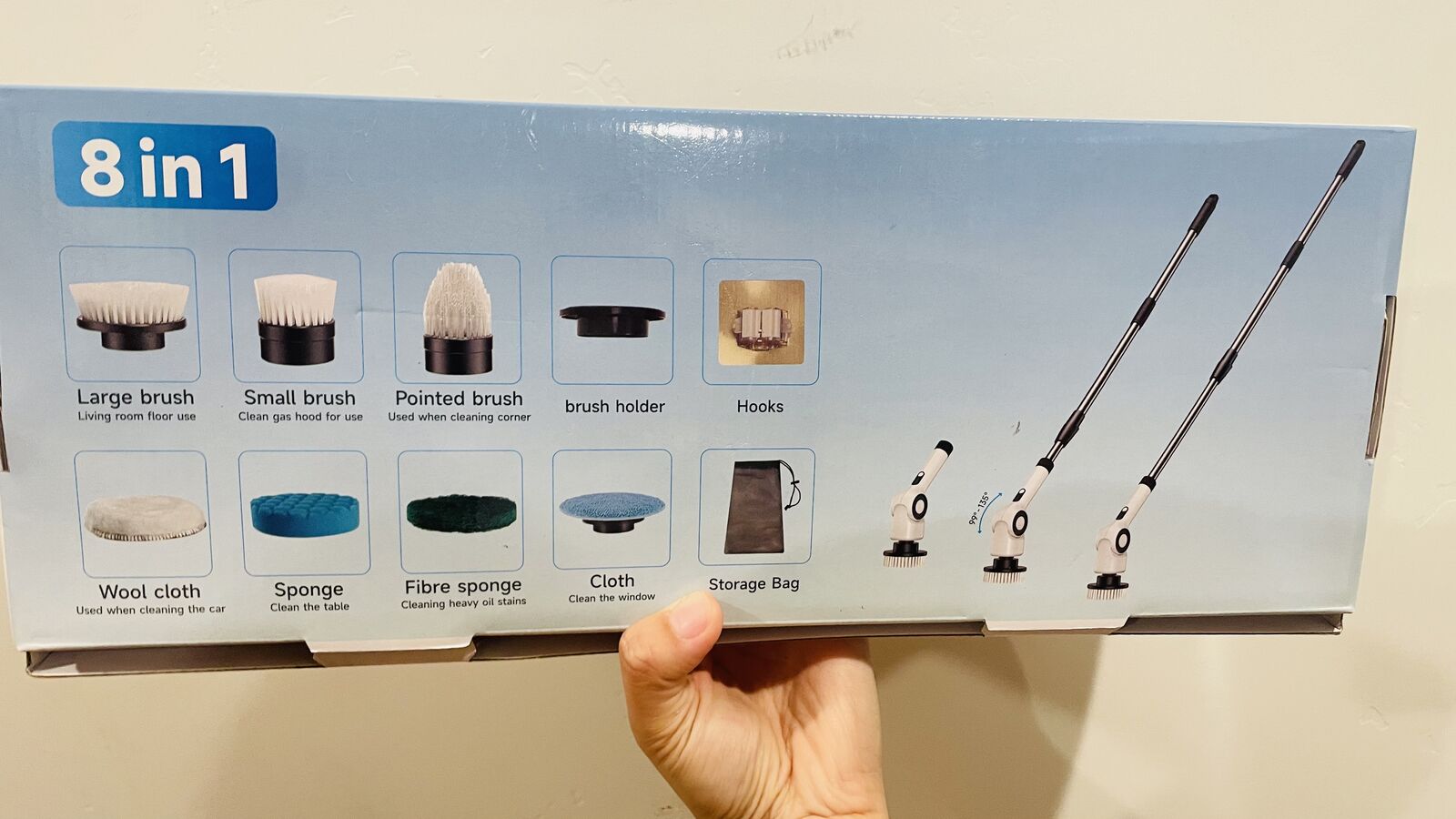 ZelleElectric Spin Scrubber Shower Scrubber,IPX7 Waterproof Electric Scrubber for Cleaning,Cordless Cleaning Brush with 8 Replaceable Brush Heads Adjustable Extension Long Handle,for Bathroom Kitchen