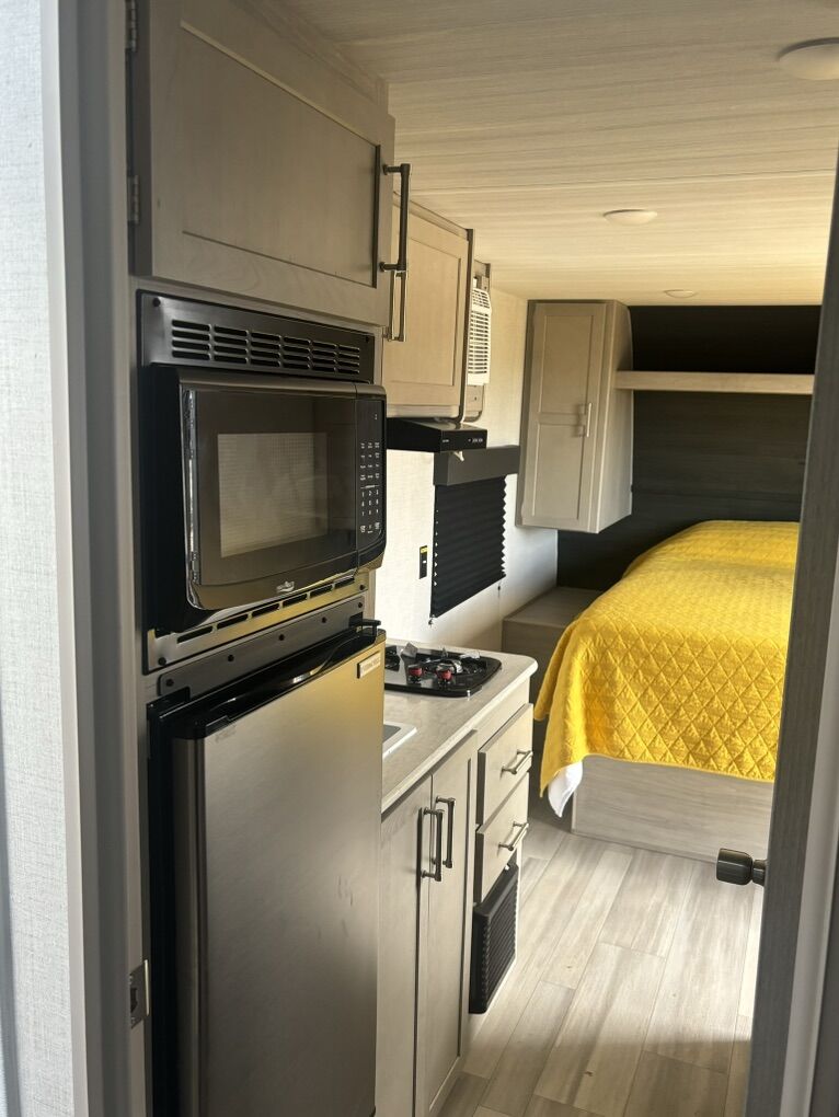 ZelleBrand new, used only a handful of times as a guest house for family. Our loss if your gain!! 2024 17’ long. Everything is in new condition, never used the black tank. Has been winterized all winter and ready for spring. Clean title transfer. If you have any questions let me know!!