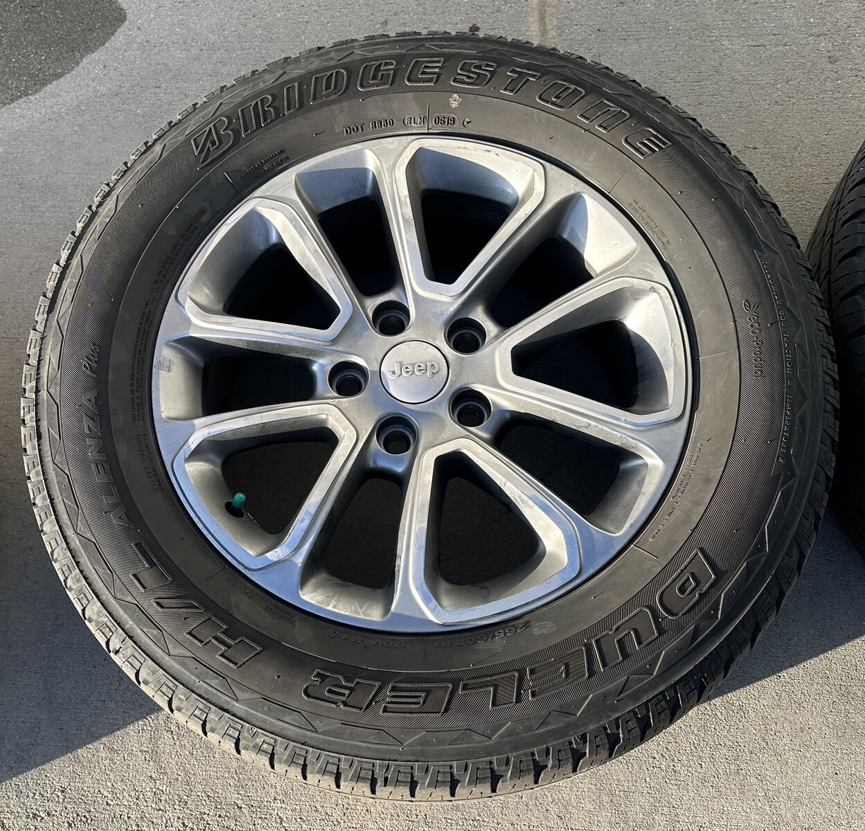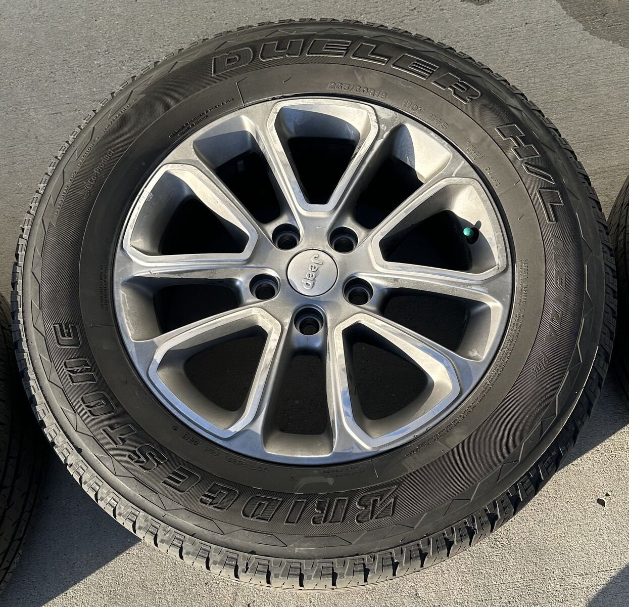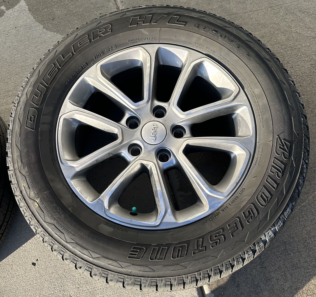 18” X 8” alloy wheels, 5-lug, 5” bolt pattern. Silver finish. OEM 1VH40TRMAB (as stamped on back of rim) or 1VH40XZAAA TIRES 265/60R18 110V Each wheel includes center cap, tire stem, and TPMS sensor. The sensors were working when I removed the wheels off my 2016 Jeep Grand Cherokee Limited last December. I believe the wheels are compatible with 2014 through 2021-year models of Jeep Grand Cherokee. Minor scuff on one wheel. See second to last photo. The tires have less than 54,000 miles and they are nitrogen filled. They have an 80,000-mile warranty but I’m not sure if the warranty is transferrable. I do have the receipt from Costco. The TRUSTACK Tire Dolly shown in last photo is included. $600 obo.