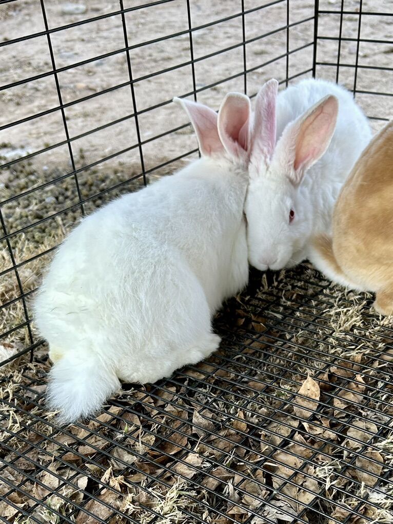 NZ/TAMUK cross. A few bucks left. My TAMUK line is really big, the NZ/TAMUK cross is even bigger. Some of these bucks have blue eyes. Fantastic for meat production. $25 for bucks