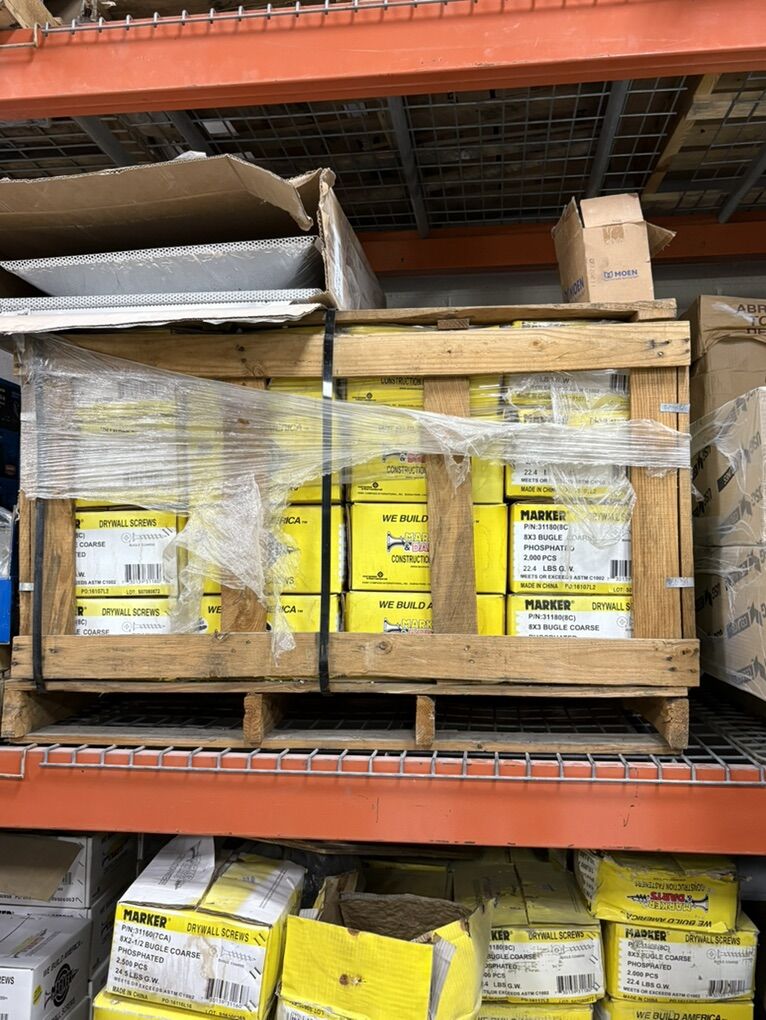 VenmoWe have about three pallets of great quality drywall screws for sale, around 64 boxes per pallet. Let me know if you have any questions and I will get them answered!  Priced at $20 a box, half off if you buy more than a pallets worth or we can figure out an even better deal there!