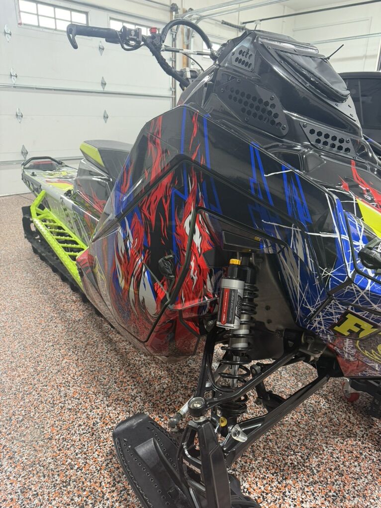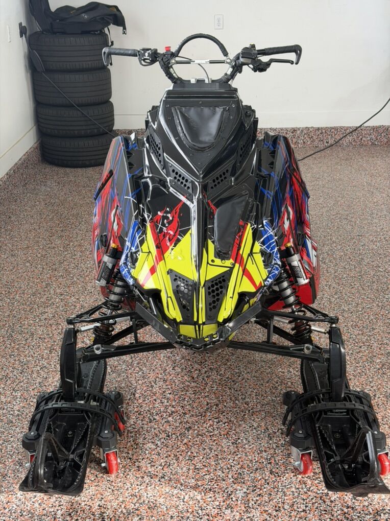 2024 Polaris 9R Khaos 165 3.25 950 miles Lightweight build Lithium battery electric start (13 lb savings) T-Rex lightweight hood (8 lb savings) Diamond S Can (11 lb savings) Zbros Exit X2 Shocks front & rear Nxt level bumpers front and rear ZRP lightweight rotating package Burandt clutching Artic FX Klim wrap Skinz throttle block Durapro tether Salazz Ski rubber