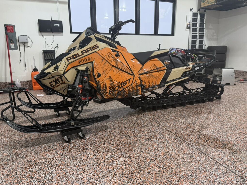 Venmo2024 Polaris Khaos Boost 165 3.25 Mega Build 900 Miles Started life as a 155 2.75 Khaos Boost Upgraded track and rails @ 700 miles 155 tunnel with 165 track makes it extra playful Fox QS3 Burandt Shocks Skinz Lightweight helium hood w/ oxbow light Skinz heated brake lever Polaris essentials tunnel bag SLP ultralight exhaust Skinz throttle block Durapro magnetic tether Backwoods BMP Front Bumper Backwoods BMP Rear Bumper Backwoods BMP subframes Salazz ski rubbers RSI bars and riser Boondocker breathe right Boondocker clutching Fire and Ice Venting TM designs wrap (can make another piece with your name to replace mine).