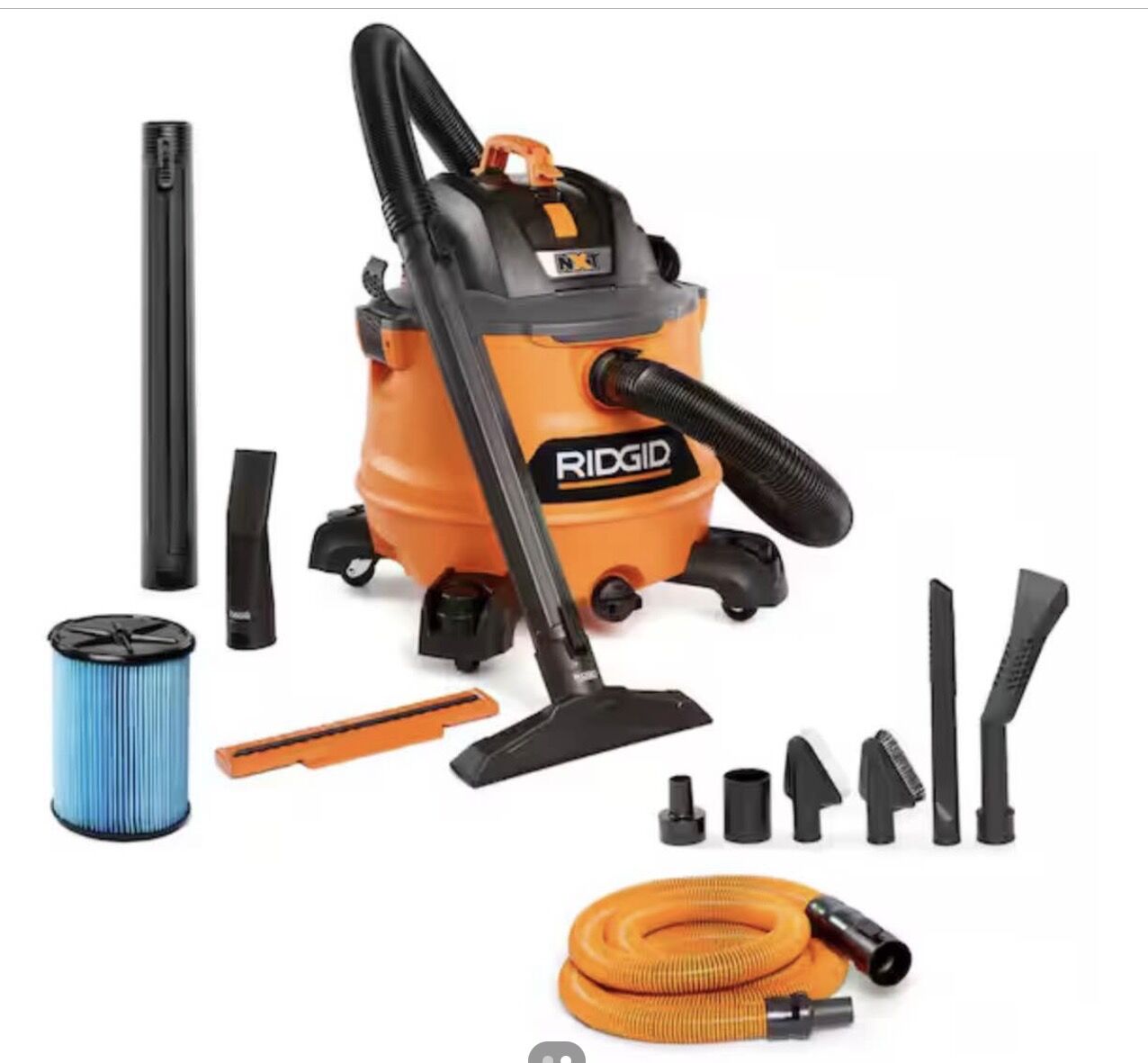 RIDGID 14 gallon 6.0 peak horsepower NXT wet/dry shop vacuum with premium car cleaning kit is best for tackling large-volume messes or heavy-duty pro cleanups