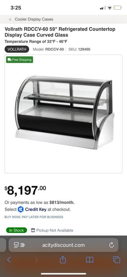 I have this Vollrath 59" heating and Cooling cabinet in great condition. All functions still work, I just acquired this business with this Equipment and have no use for it as it's not the direction my shop is going. This is a cabinet that new is worth over 8k. It's 59" long and about 20" deep, with sliding doors on the back. It's a countertop model, so it's not tall enough to stand on the floor. Great for any new bakery or someone upgrading a display case at a cafe.
