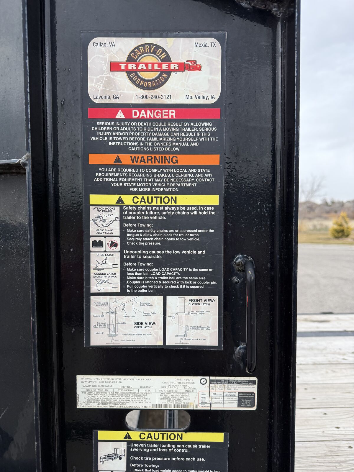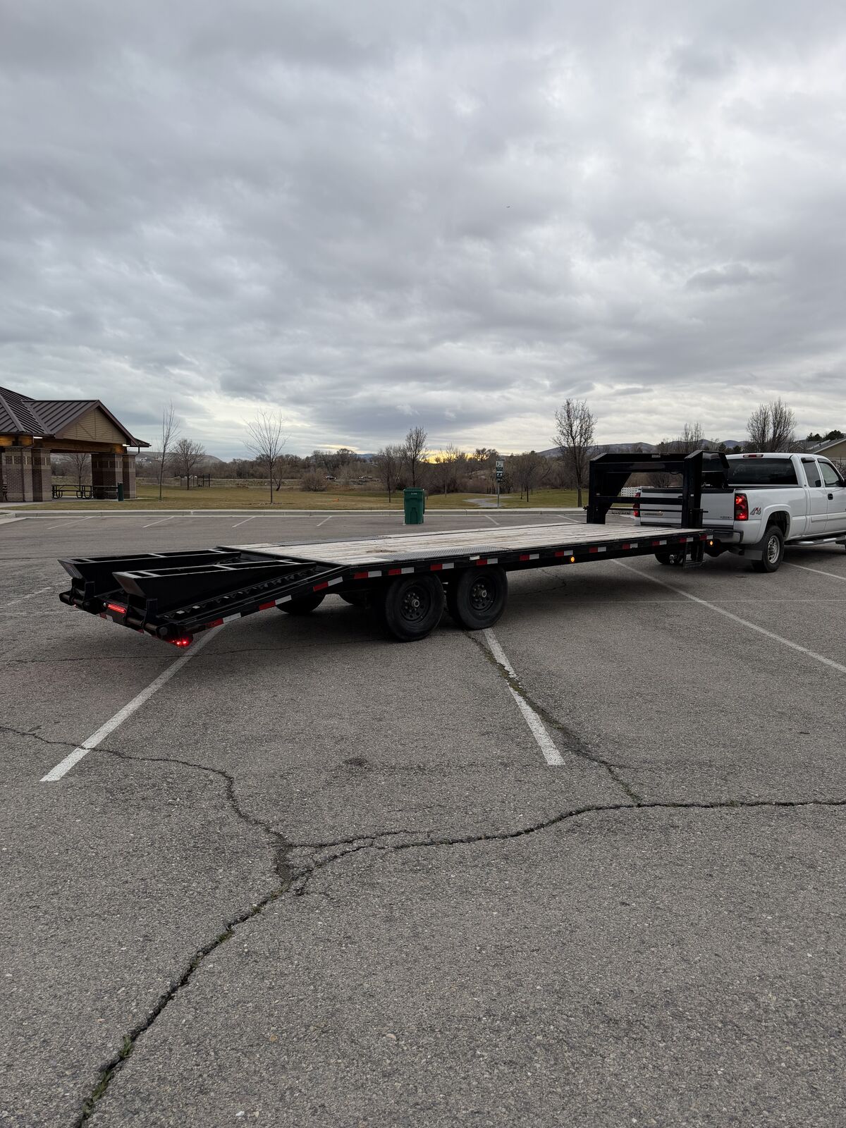 2019 Carry On Corporation gooseneck trailer. 20 foot flat and 5 foot dove tail. Dove tail includes folding ramps. 7k axles with electric brakes, and has good tires. 14K Gross weight max load.