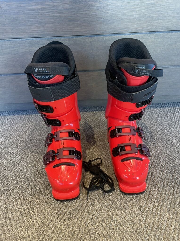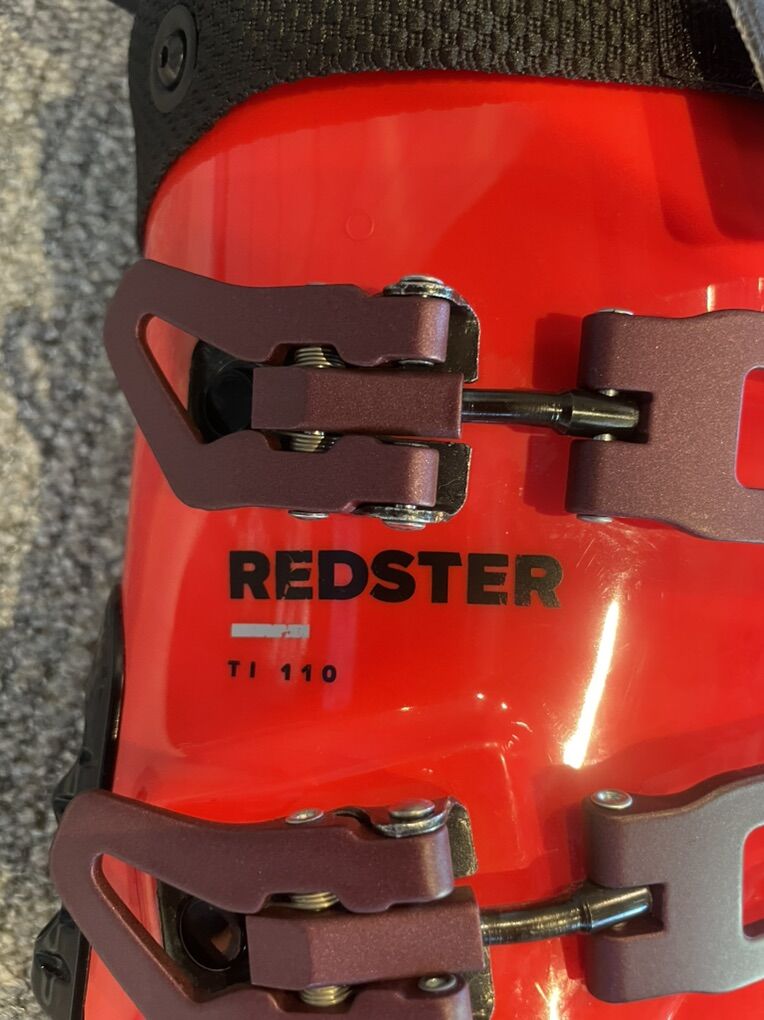 ZelleAtomic Redster 110 Ti 25.5 boots with new gripwalk soles. Never been on snow, no work done to the boots. Heat moldable liners. Unfortunately for me they are a size too big. 95 mm last.