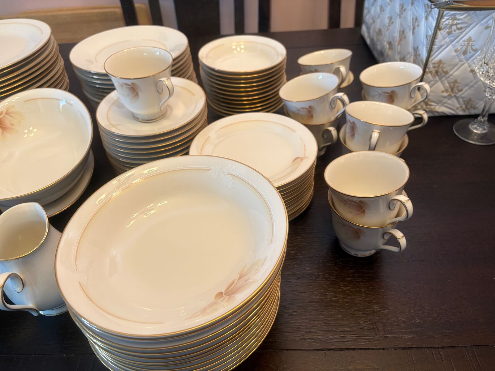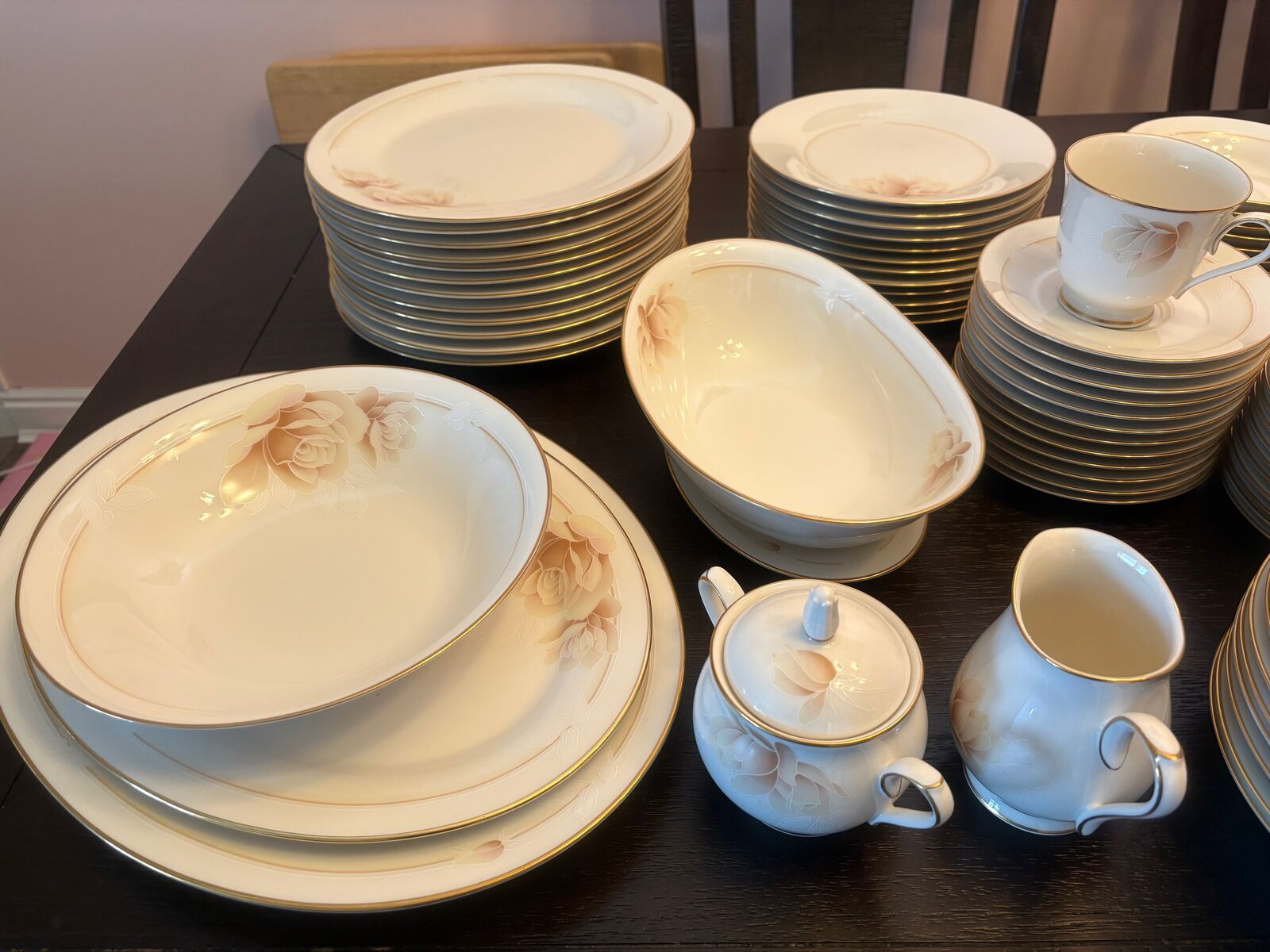 12 place setting of fine china - plates, bowls, saucers, cups (1 missing), etc.