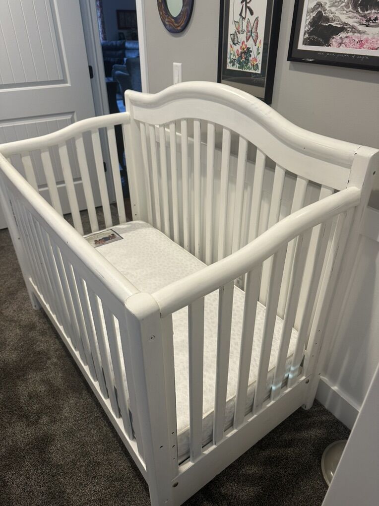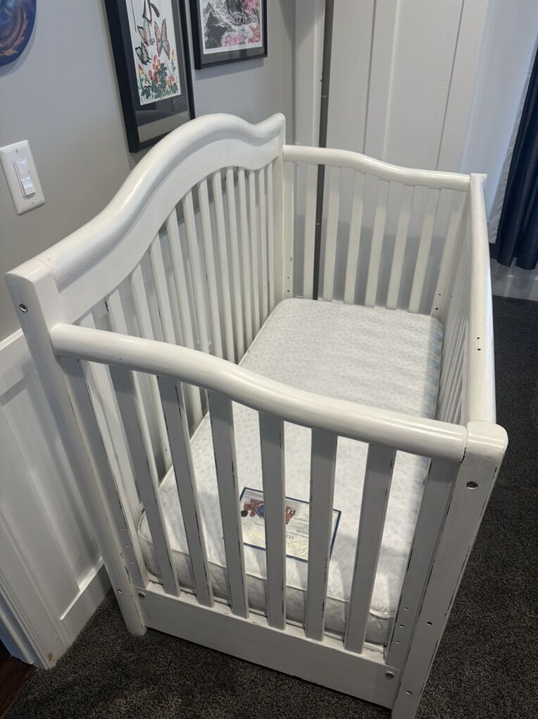 VenmoNicely refinished with chalk paint and distressed look. In good condition with a nice mattress. Will like nice in a baby nursery. .