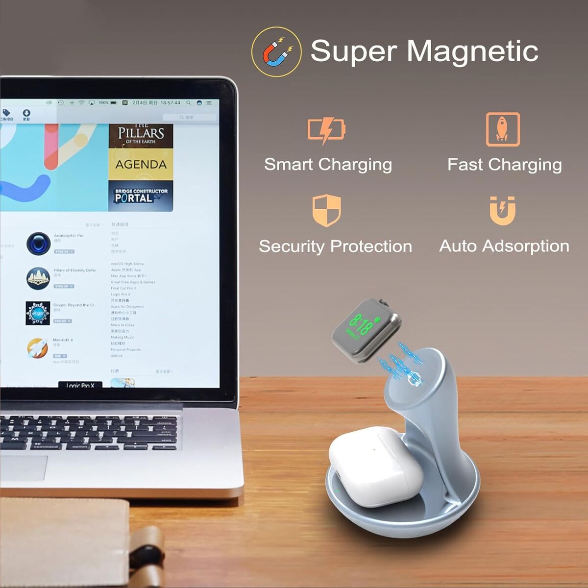 NEW IN BOX! Apple Watch Charger,for iWatch Charger Stand,for Airpods 4/3/2/Pro,2 in 1 Wireless Fast Watch Stand Charging Compatible with iWatch 10/9/8/7/6/5/4/SE, Holder Charging Dock Cable (Blue)