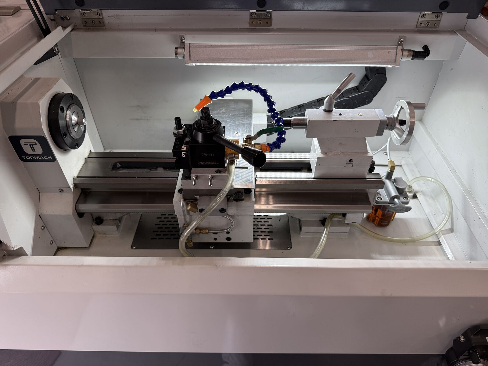 Tormach 8L lathe is a super affordable lathe for the Small shop or Hobbyist. This thing has every option. This has everything to start turning metal when you get it to your shop.