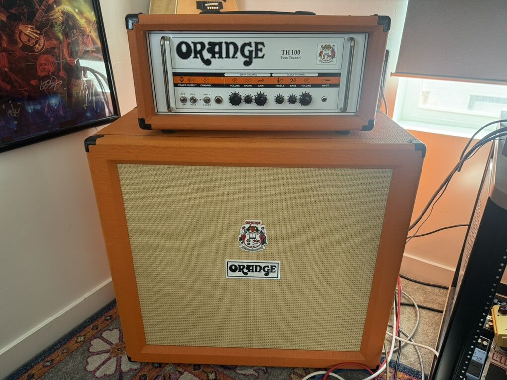 For sale is a full Orange rig consisting of an Orange TH100 head and a UK-made Orange PPC 4x12 cabinet loaded with Celestion Vintage 30s. Everything is in excellent working condition and has been well cared for.