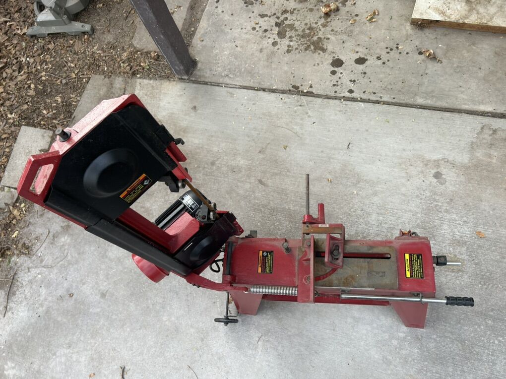 Venmo Central machinery, horizontal/vertical metal cutting bandsaw 120 VAC/60 Hz 1 hp cutting capacity 4 1/2. 4 x 6“  rectangular  It comes with two blades