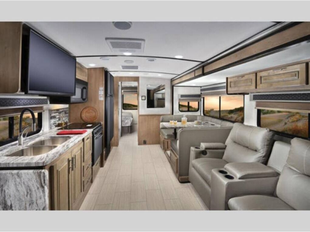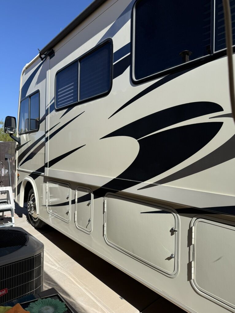 Beautiful coach, like new, low mileage (21,400) Sleeps 6-7, 2 recliner model. Ford F350, V10 gas engine, tires great. Fold down cargo carrier hitch mounted to carry E-bikes or whatever. Oman 5.5 KW generator with low hours. Large double door refrigerator, 2 slide outs, awning, entertainment center on patio. large bed over cab seats, raises when not in use. Jared Miles, 801-520-9532, in St George UT, but soon to be in South Jordan UT. VIN 1F65F5DY4K0A10358