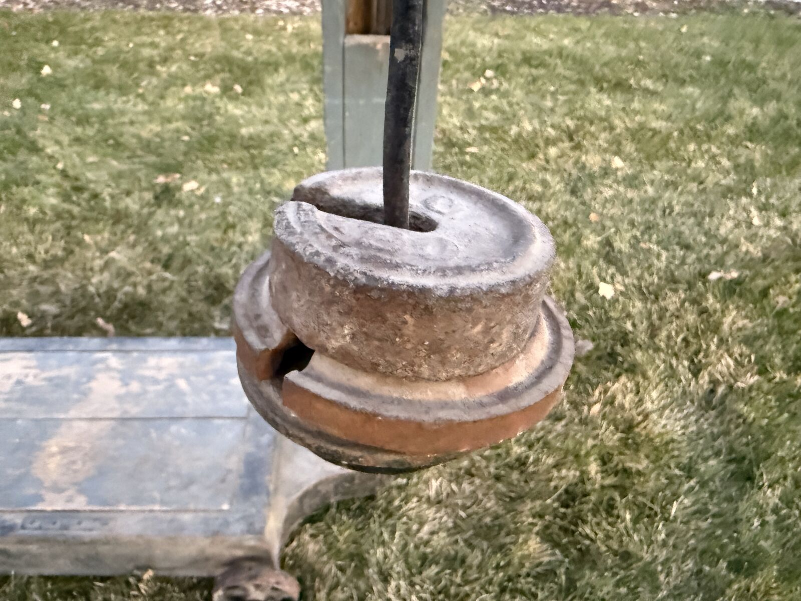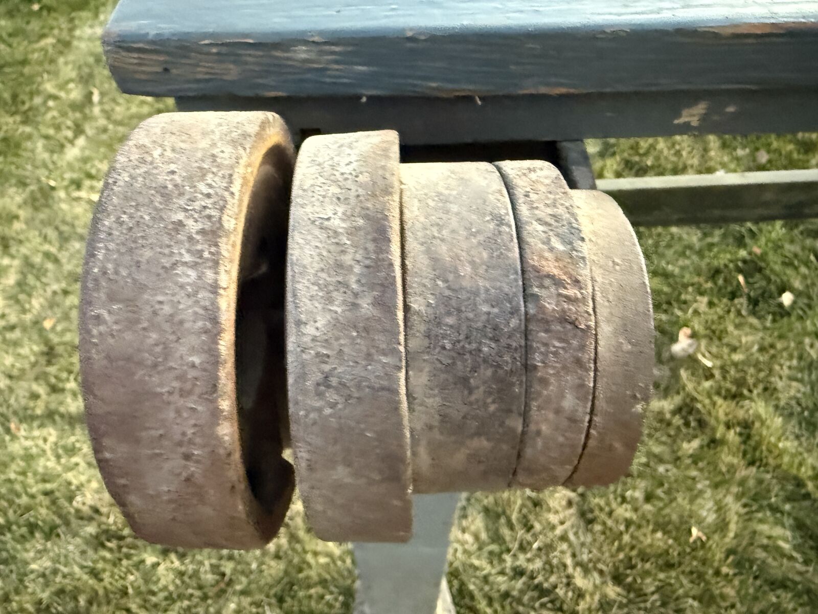 Shows honest wear, aged paint, and natural patina that give it real character. Heavy, solid, and not a reproduction. Rolls easily on original iron wheels.