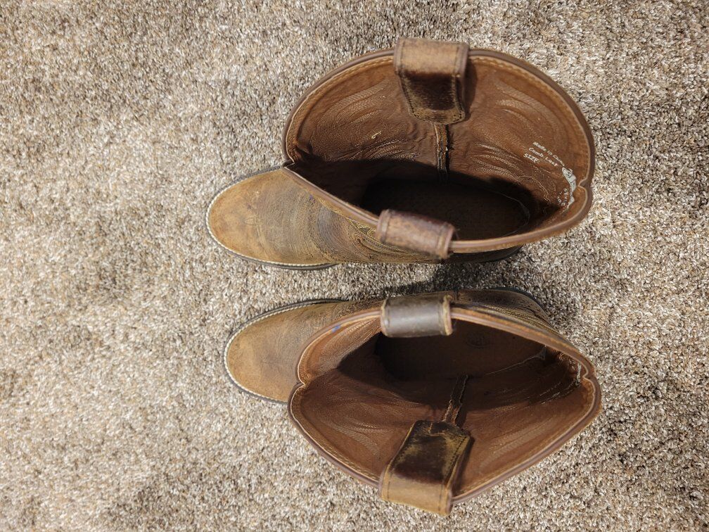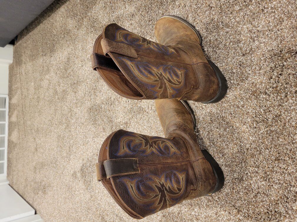 VenmoI outgrew these years ago and hope to find them a new home where they will be loved and used. Beautiful blue design on the rustic brown leather, only worn a handful of times and in perfect condition. The brand is Justin Boots. $95 obo cash or venmo, pickup or delivery
