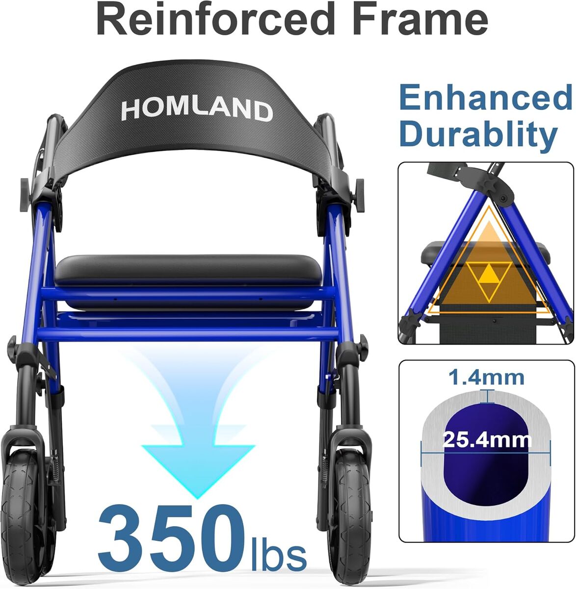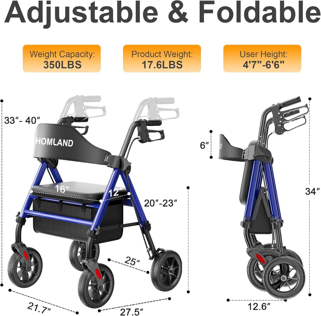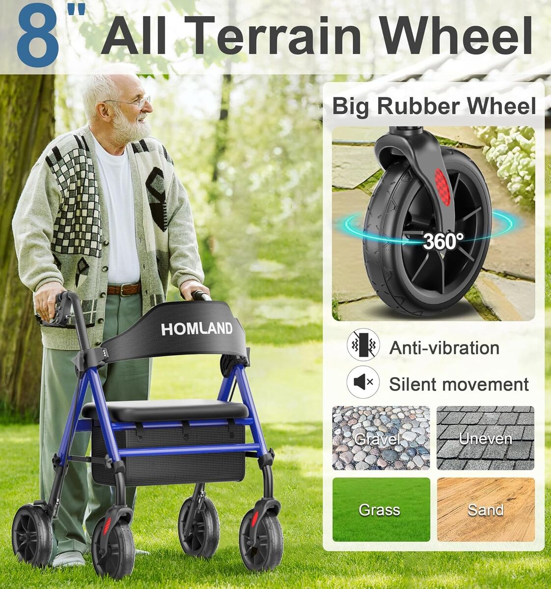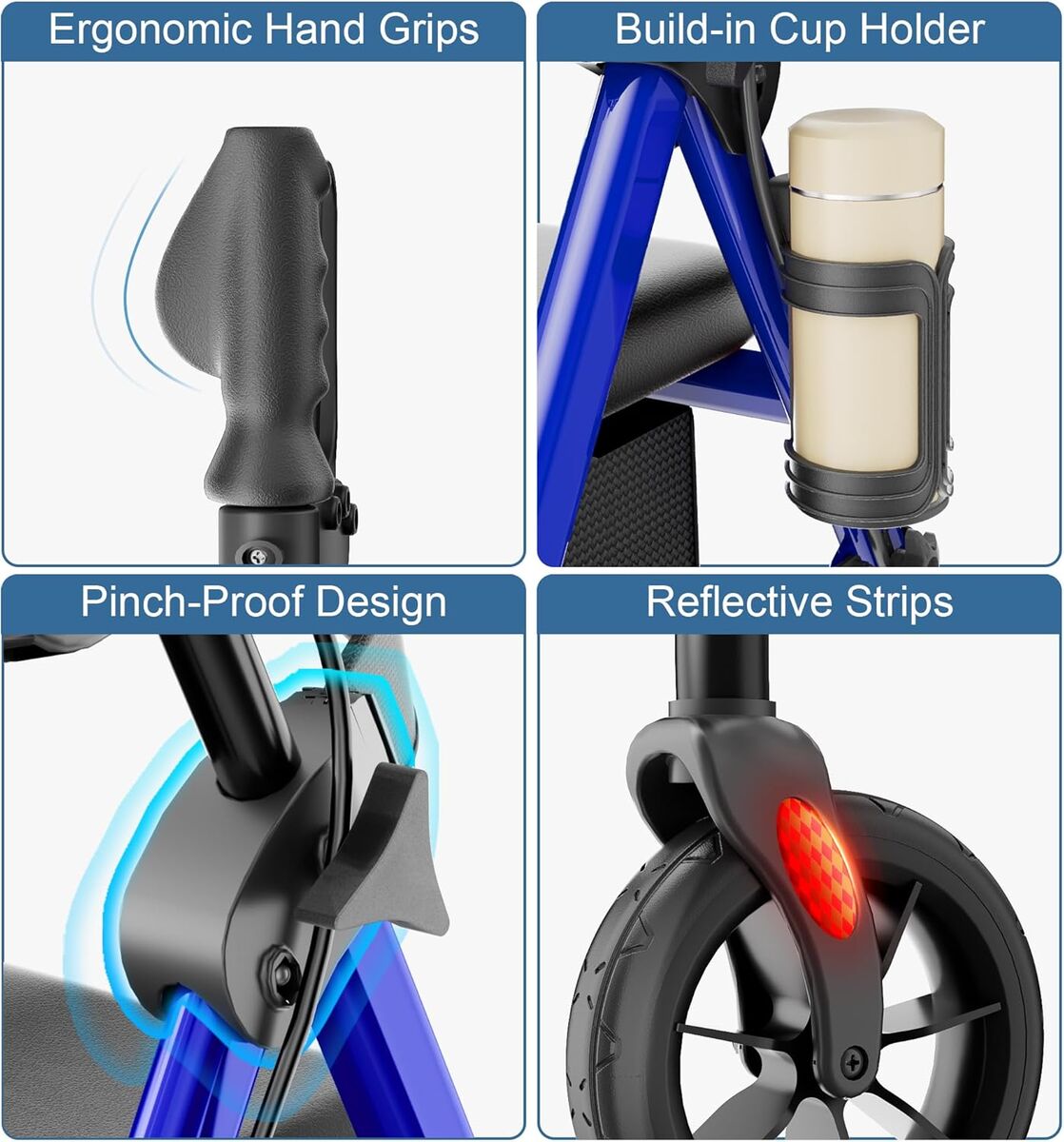 NEW IN BOX! Walkers for Seniors with Seat, Foldable Rollator Walker, Reinforced Aluminum Frame, 8" Big Rubber Wheels for All Terrain, Height Adjustable Lightweight Rolling Walker