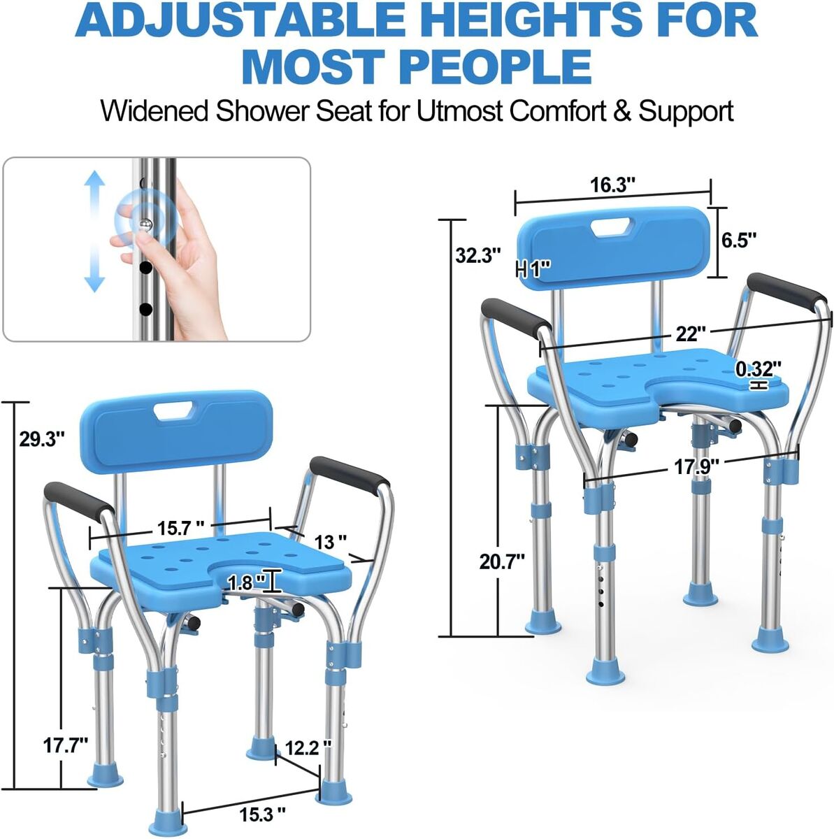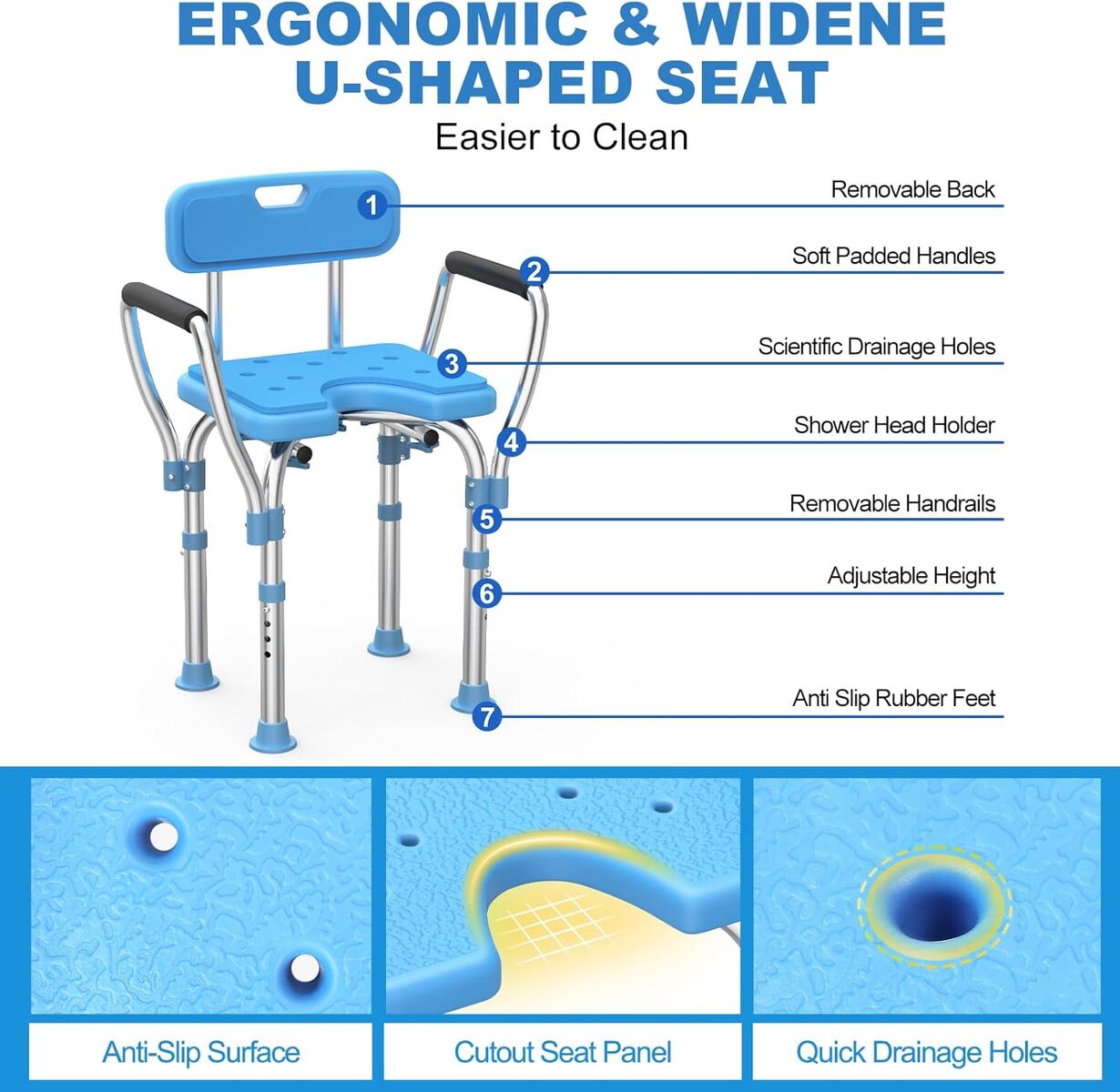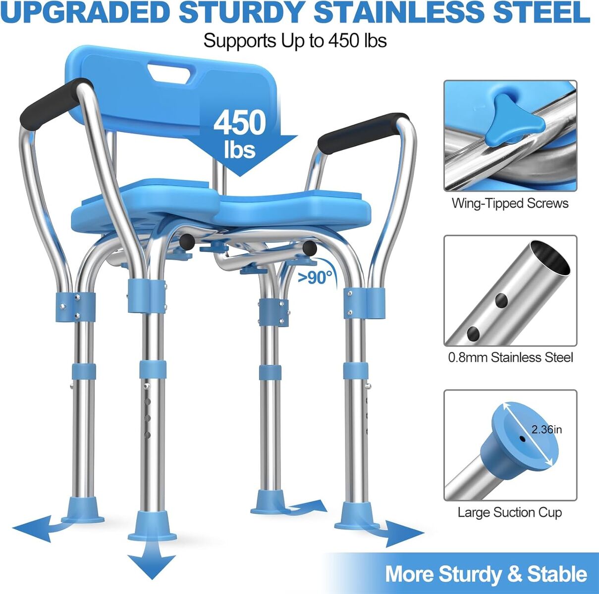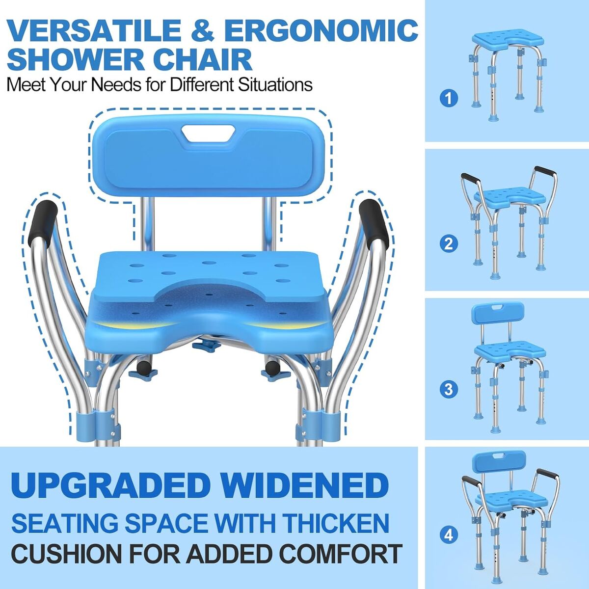 NEW IN BOX! Cutout Seat Shower Chair with Armrests & Back, FSA/HSA Eligible Upgraded 420lbs Stainless Steel Padded Shower Seat for Inside Shower, Anti Slip Adjustable Bathroom Chair for Elderly Disabled