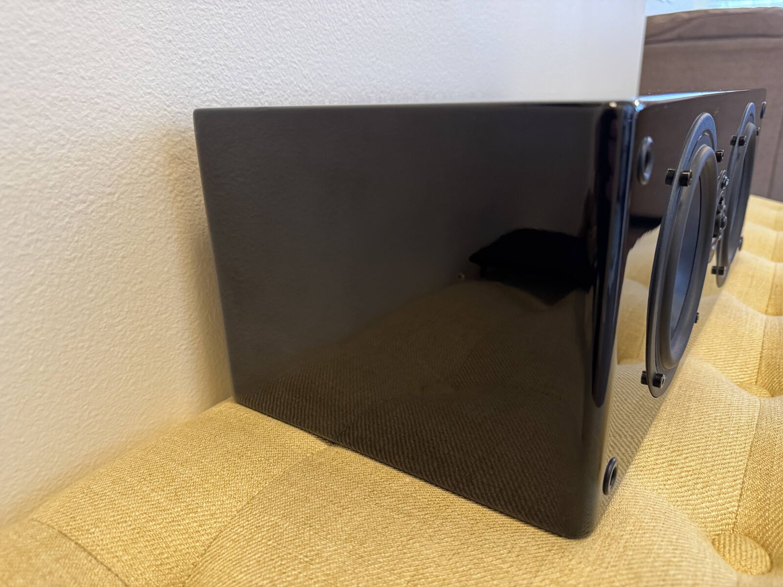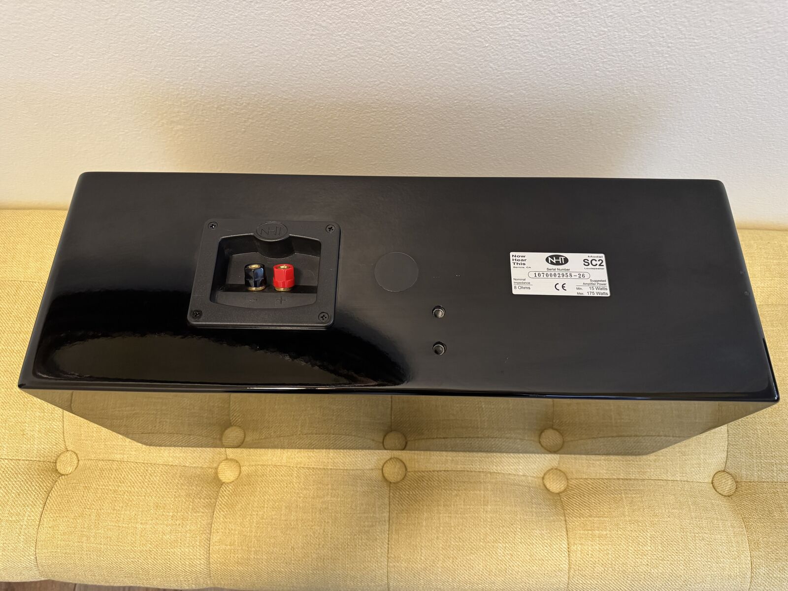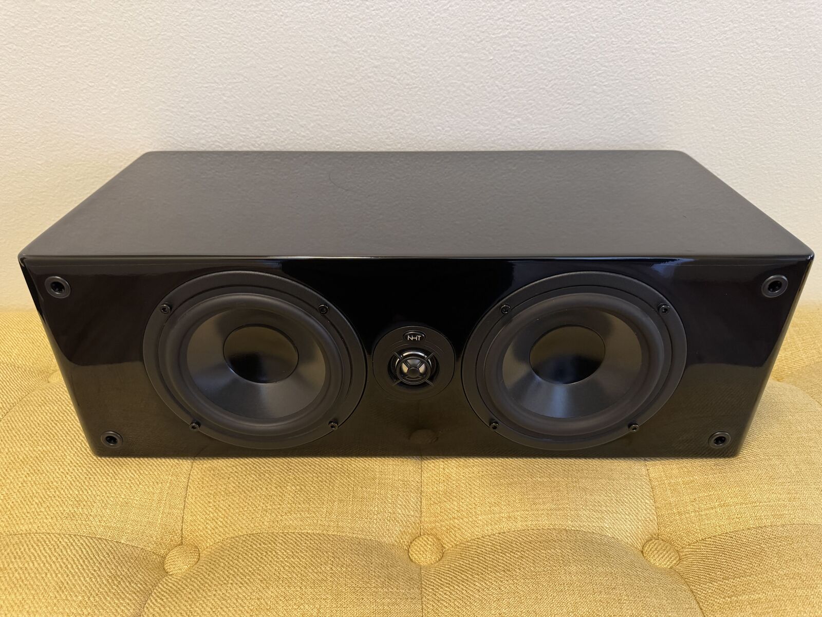 VenmoThe NHT SC2 center speaker is a stylish, high-quality gloss black center channel ideal for any home audio system. It features dual 5.25 polypropylene woofers and a 1 aluminum dome tweeter, capable of 15-175 watts RMS power for clear, natural dialogue and powerful sound. Drivers are excellent; cosmetic condition is 8/10 due to minor scuffs and scratches on the gloss finish. Dimensions: 8.5” x 19” x 6.5”. Weight: 22 lbs