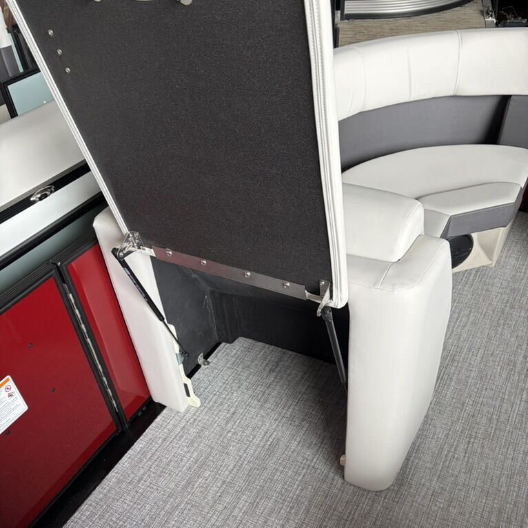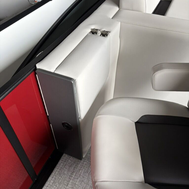 Key Features: 115 Pro XS EFI Fourstroke Mercury 225 RPM Chassis Ruby Red Metallic Fence Paneling w/ Matte Black Accent Black Powder Coated Fence Railing Tungsten and Smoke Vinyl Upholstery Luxury Recliner Helm Seat Storage Under Every Seat Lillipad Easy-Step Ladder Wet Sounds Stereo 28 Gallon Fuel Tank 12’ Canvas Bimini Black Bimini Frame Simrad Touch Screen Display Wireless Phone Charger 12V DC Receptacle