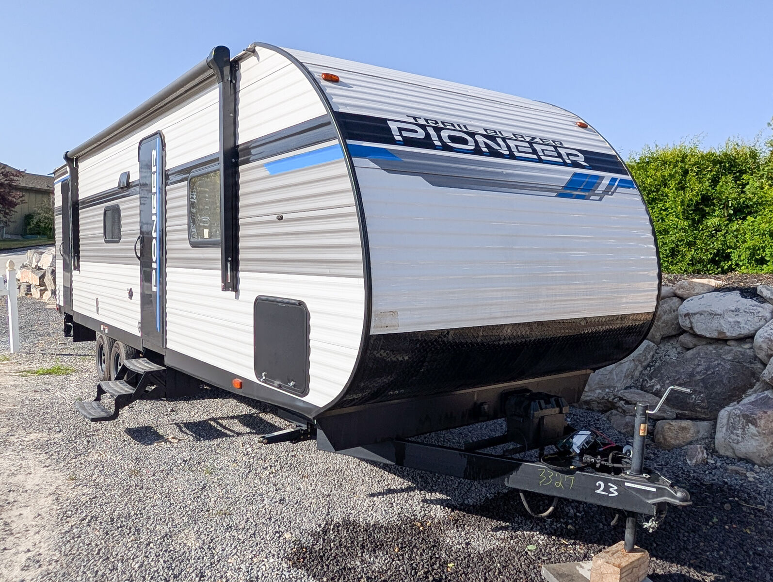 LIKE NEW 2024 Heartland Pioneer! This trailer is in great shape. Model number BH261. 2024 Heartland Pioneer BH261 is a 31 ft travel trailer designed for families, featuring a private rear bunkhouse with versatile, removable bunks, a, master suite with a queen bed, and a, spacious slide-out for the dinette/sofa. With a dry weight of approximately 6,900 lbs and a 7,600 lb GVWR, it comfortably sleeps 6-8 people. Come with a new battery, propane tanks, power cord. Asking $16,800.00 OBO