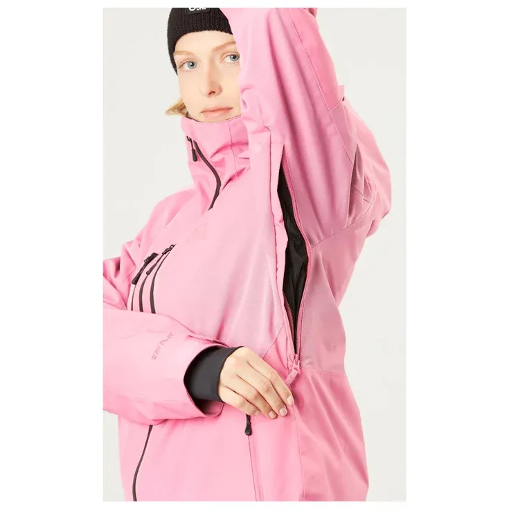 The pit zips provide optimal cooling when needed, while the stretch powder skirt and longer back keep snow at bay. The Sygna is also functional, with a jacket/pants interface for perfect protection. It also has numerous pockets both outside and inside for a perfect balance between style and function.