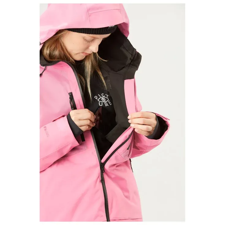 Ultra-wear-resistant, the Picture Organic Sygna women’s ski jacket is ideal for winter sport enthusiasts. It is sustainably made of recycled polyester with a waterproof/breathable 20K/20K Dryplay membrane that guarantees excellent waterproofness and breathability. It has sealed seams, while the outer shell benefits from a Teflon EcoElite water repellent finish for additional moisture protection.