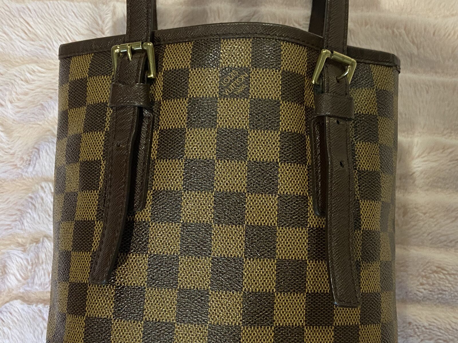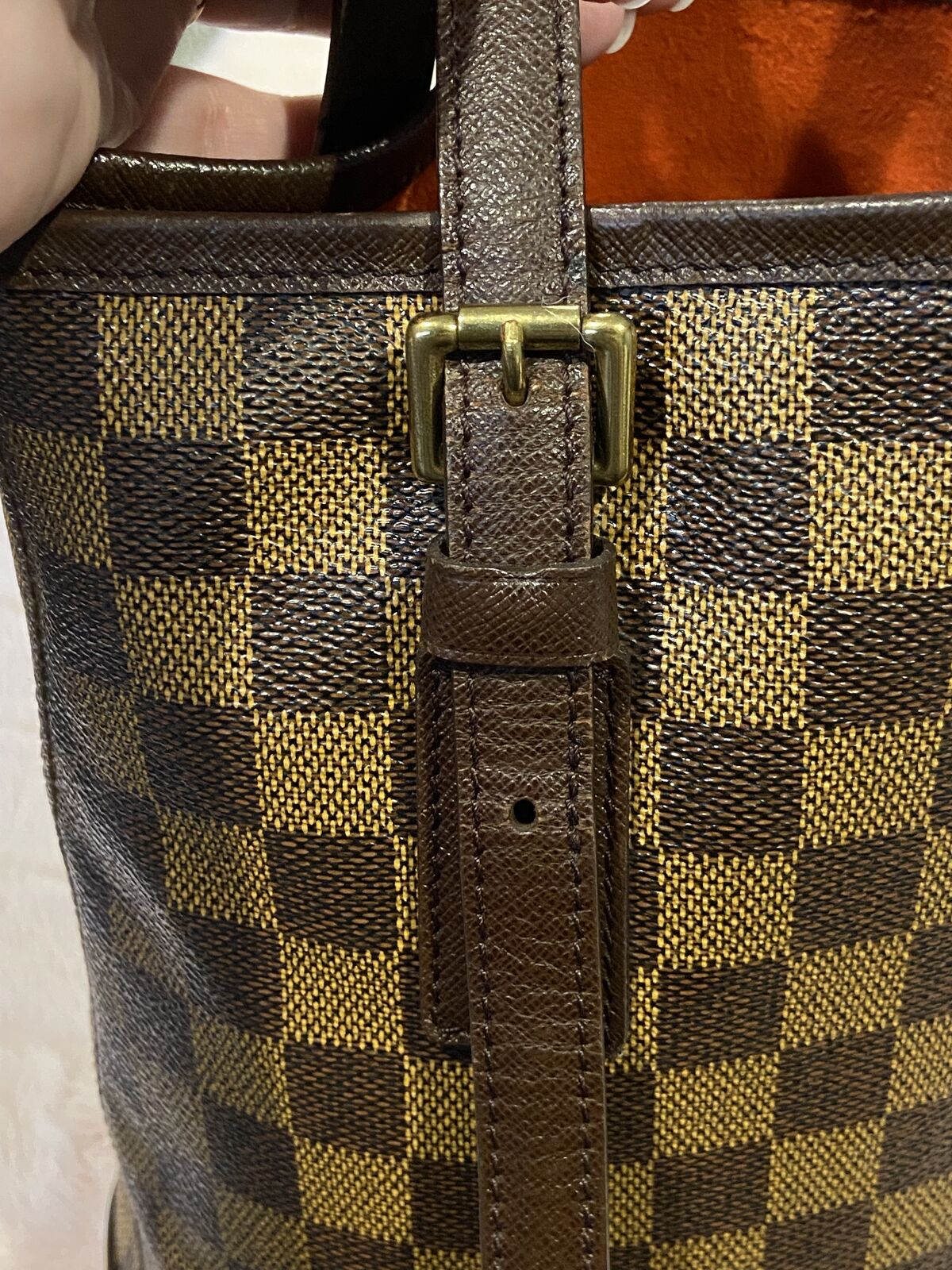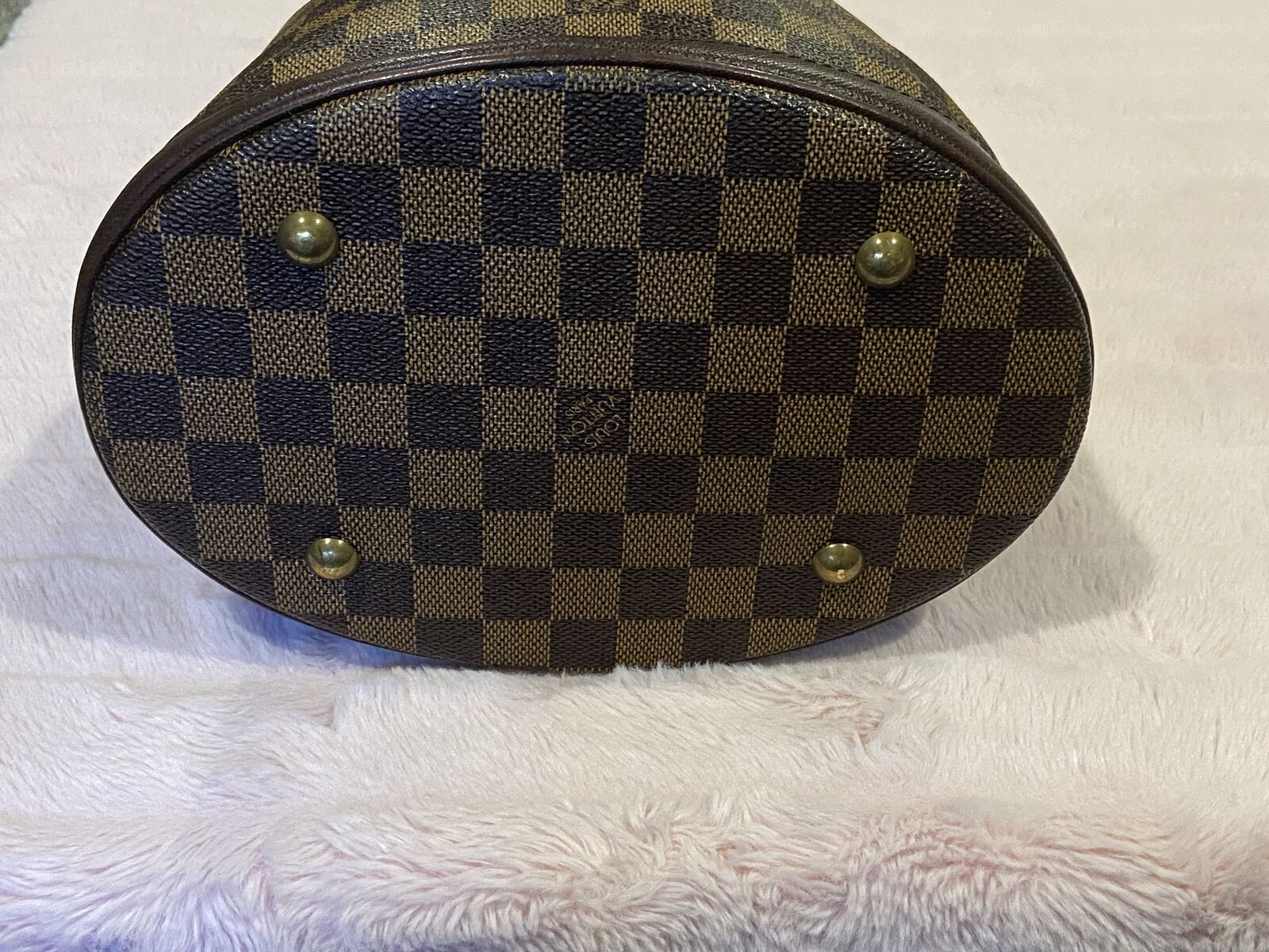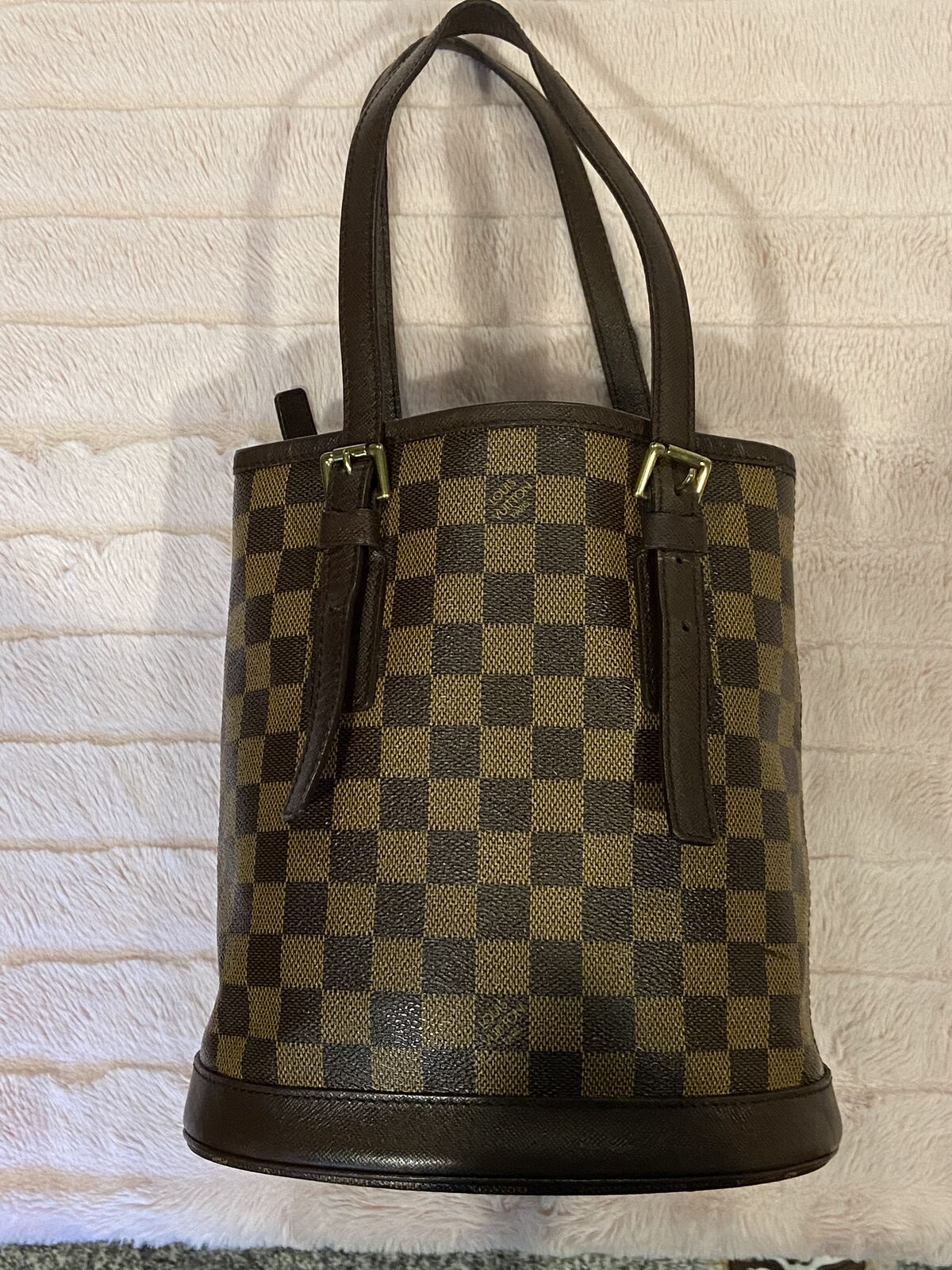 ApplePayAuthentic Louis Vuitton vintage Damier Ebene bucket pm bag. This bag is in good condition. Clean red suede interior, clean canvas and no smell. There are some minor pen marks in the interior and the straps have some cracking where it adjusts, other than that this bag is in good condition being vintage. Date code AR 0968 made in 1998. Will come with a COA. Open to reasonable offers.