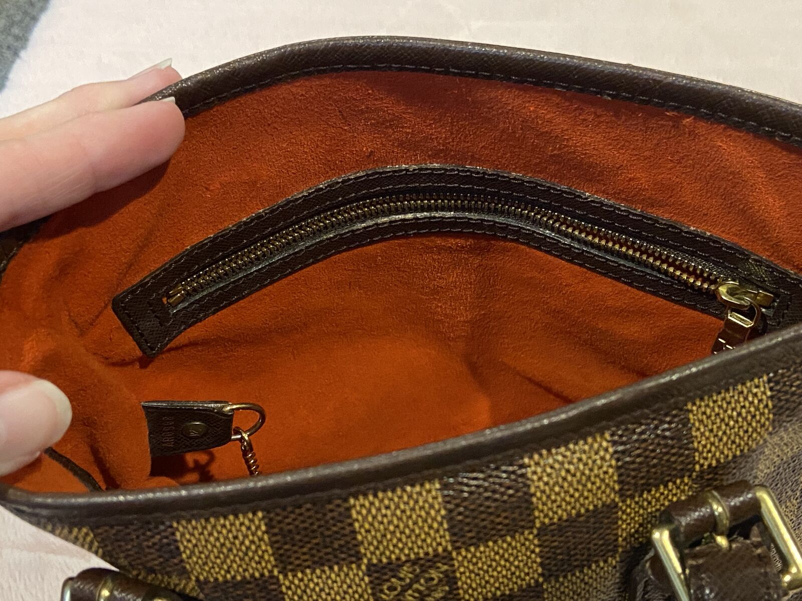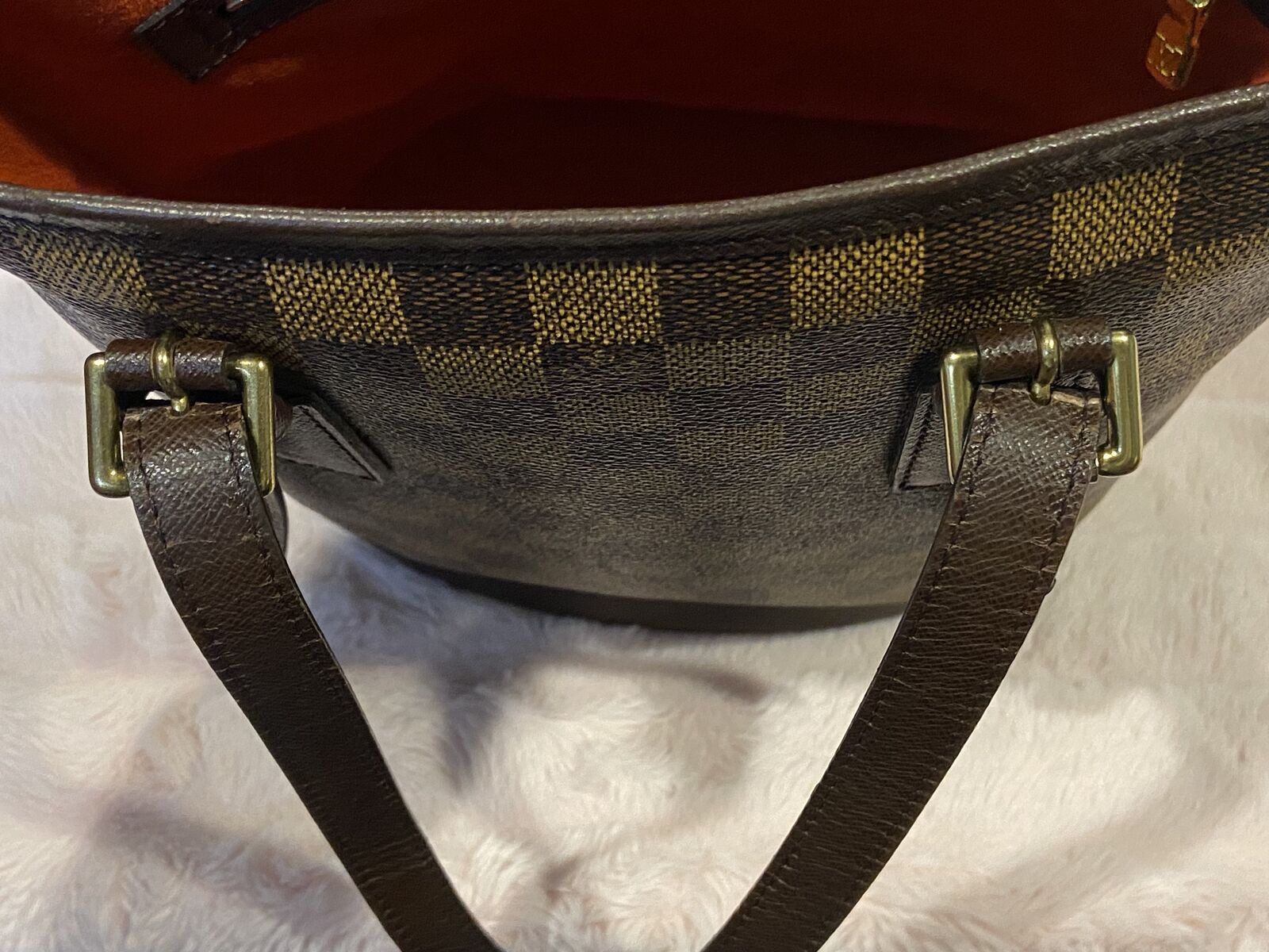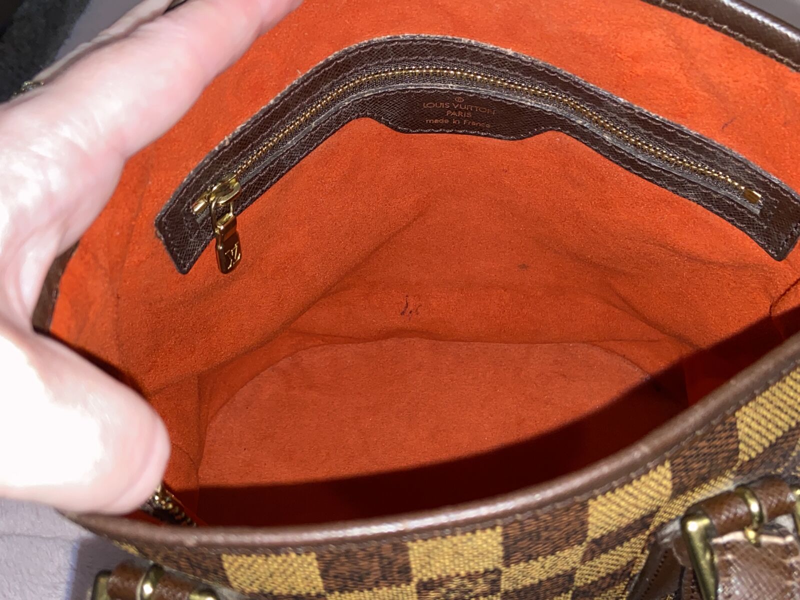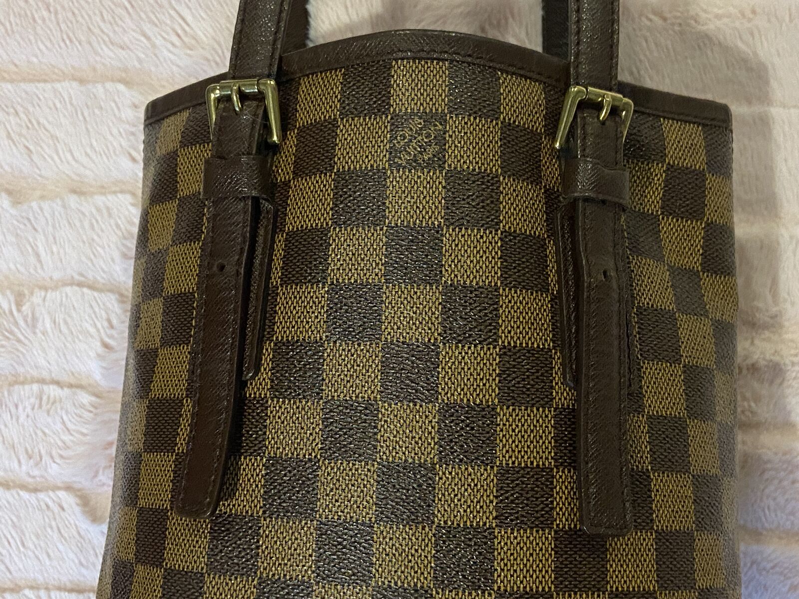 ApplePayAuthentic Louis Vuitton vintage Damier Ebene bucket pm bag. This bag is in good condition. Clean red suede interior, clean canvas and no smell. There are some minor pen marks in the interior and the straps have some cracking where it adjusts, other than that this bag is in good condition being vintage. Date code AR 0968 made in 1998. Will come with a COA. Open to reasonable offers.