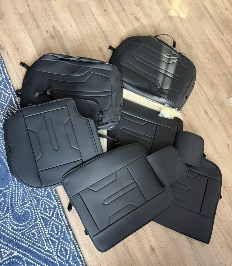 Black Car Seat Covers front and back Breathable Faux Leather Universal Seat Covers for Automotive Protector Fit for Most Pick-up Trucks.