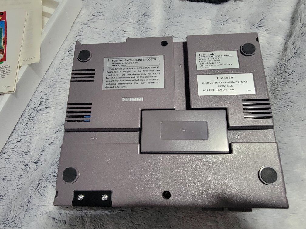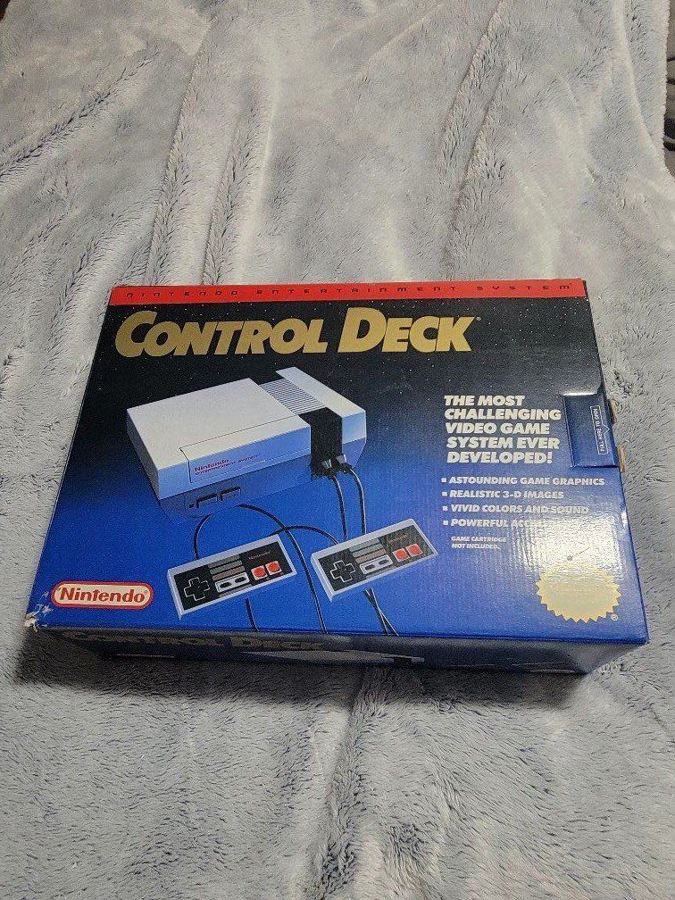 Almost new in box. Nes system box copy right 1990. Still original Nes but with better chips then the first release in 1985, last run of the original system before the release of the next generation Nes, just different box. I have read its harder to find then the first type box. All original paper work, controllers, ect. Comes with the iconic Paper Boy Game. No case or papers for game. Only thing is little damage on corner of box as seen in pictures, and there's some sort of substance like paint or something on the power bank as seen in pictures. Other then that its like new in box. Tested and works great. Box alone sells for $80+ on ebay. Asking $400.00 obo. ridiculous offers will be ignored, along with out of state numbers. text is best. 801-645-3225 cash or venmo in person only.