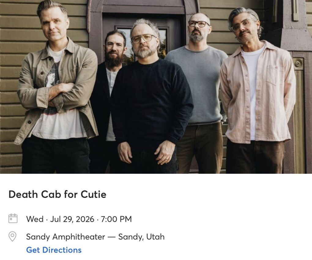 VenmoDeath Cab for Cutie is playing at the Sandy Amphitheater on July 29, 2026, and the show is completely SOLD OUT. I have four (4) General Admission grass tickets available.