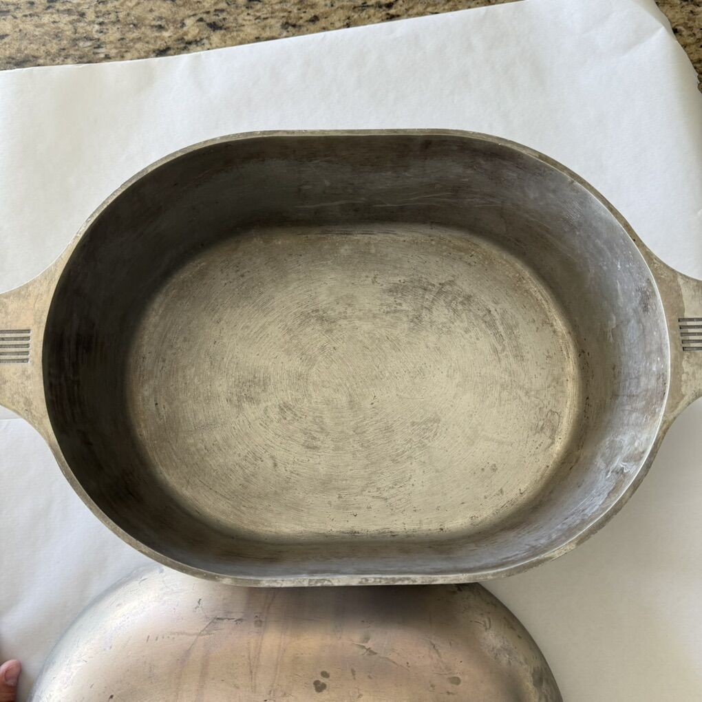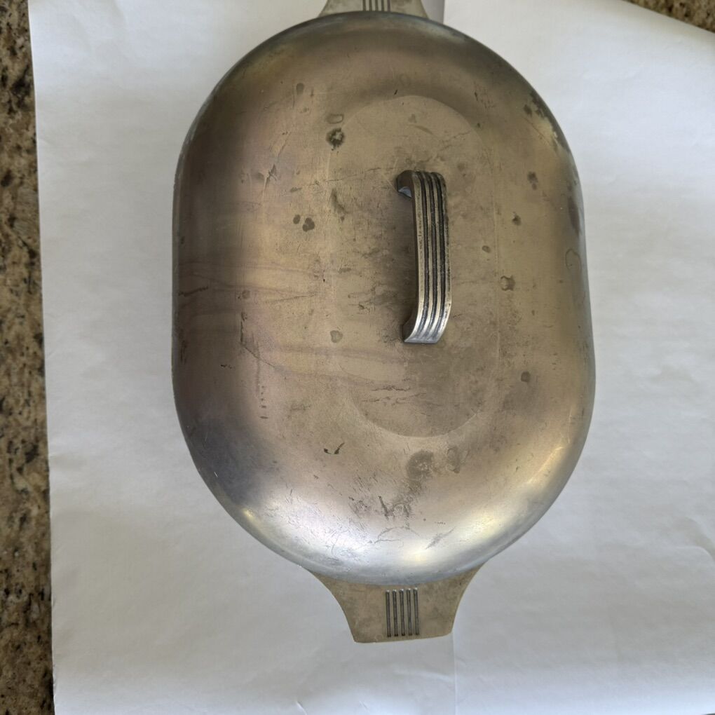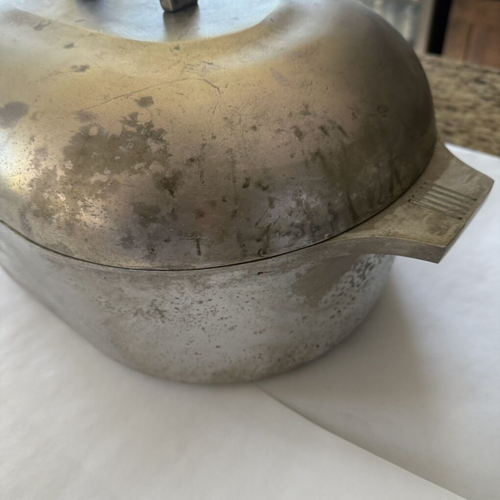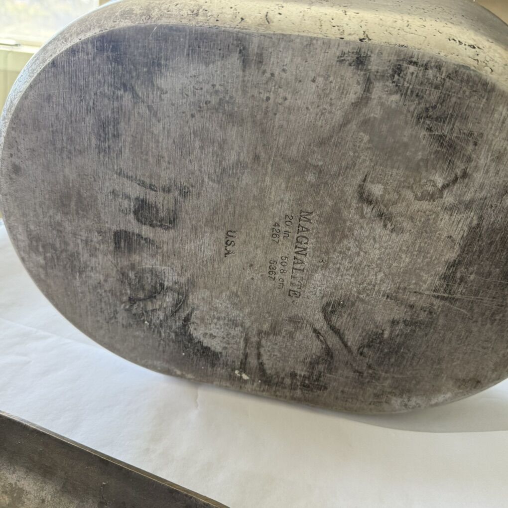 Needs some TLC, does not include trivet, but priced right. Made in the USA. This particular model is one of the last ones made before they sent manufacturing to China. It actually has thicker walls than the more vintage models with the “Sydney O” markings, making it an overall better cooking vessel than its older, but more widely collected, predecessors.