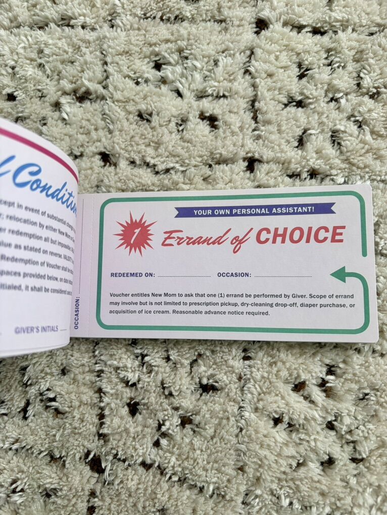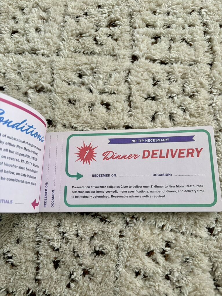 VenmoSelling this fun book of vouchers for new moms. This would be a great gift for a new mom in your life that they can “cash in” for things like dinner delivery, errand of choice, etc. Asking $5.