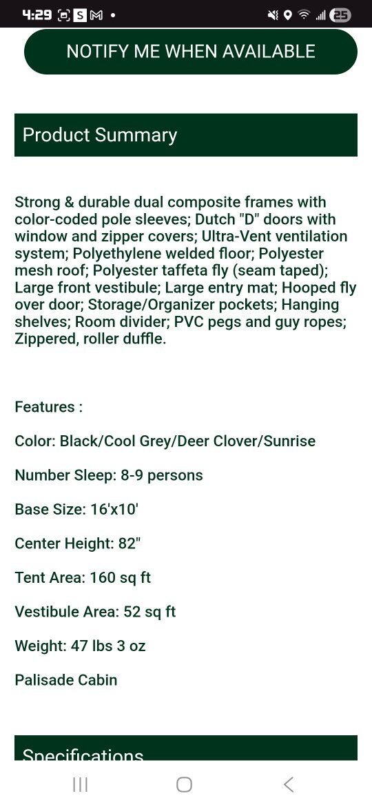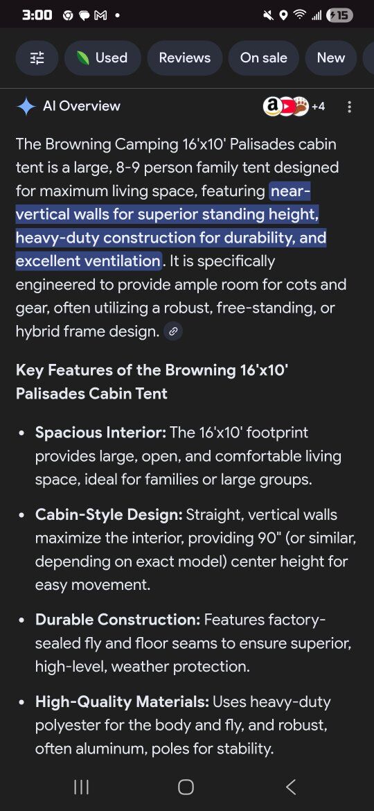 Browning 16'x10' palisades tent cabin. sleeps 8 to 9. lots of fun things inside to explore. weatherproof. Great condition. Just too big for me and 1 other. I'll throw in a Queen sized felt topped air matress for free. polyurethane floor.