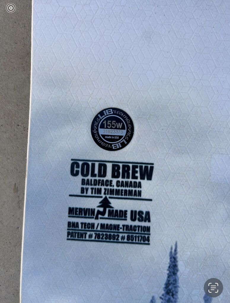 VenmoOnly used a couple times. Like new. Burton scribe bindings mounted The Lib Tech Cold Brew is a versatile, directional all-mountain freeride snowboard, ideal for intermediate to advanced riders seeking a,, “daily driver” that excels in powder and hardpack. It features a,, medium flex, C2 rocker/camber profile for float, and Magne-Traction for, edge hold on ice. It is described as a,, responsive, surfy, and, “do-it-all” board that is,, forgiving yet, stable.