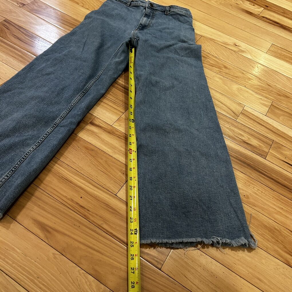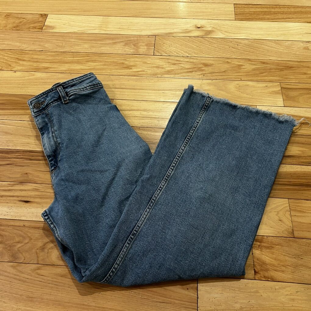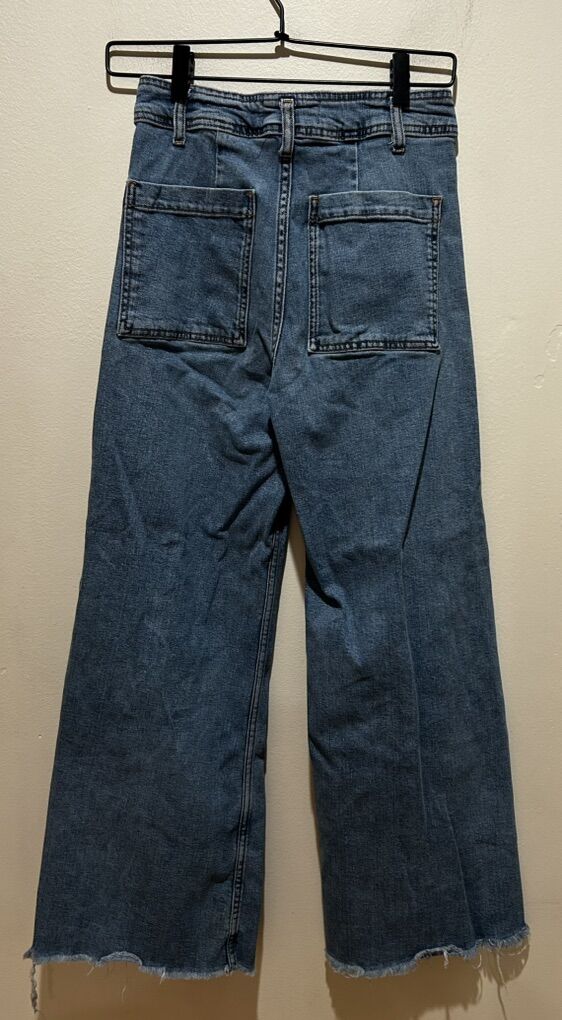 Zara Flare Wide Leg Denim Blue Jeans with Raw Distressed Hems - Women’s Size 6 - I feel like they run a a little small so please check measurement photos to confirm fit - with zipper and button closure - great condition - pre-owned.