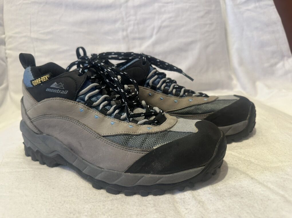 Montrail women women’s size 9 grey/blue with black trim Gore-Tex mid hiking boots. These are an excellent condition, see photos for details. I take cash or Venmo, but cash is preferred. Text is best. 801-201-4446. Check out my other ads for additional sizes and styles.