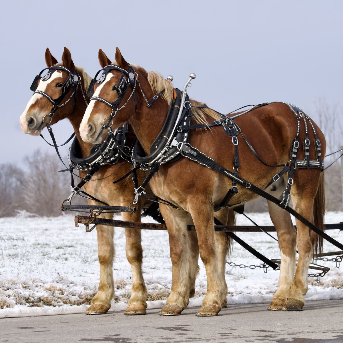 Meet Bill & Cody, a 3- and 4-year-old Belgian Draft Horse team standing a solid 17 hands tall and showing maturity well beyond their years.