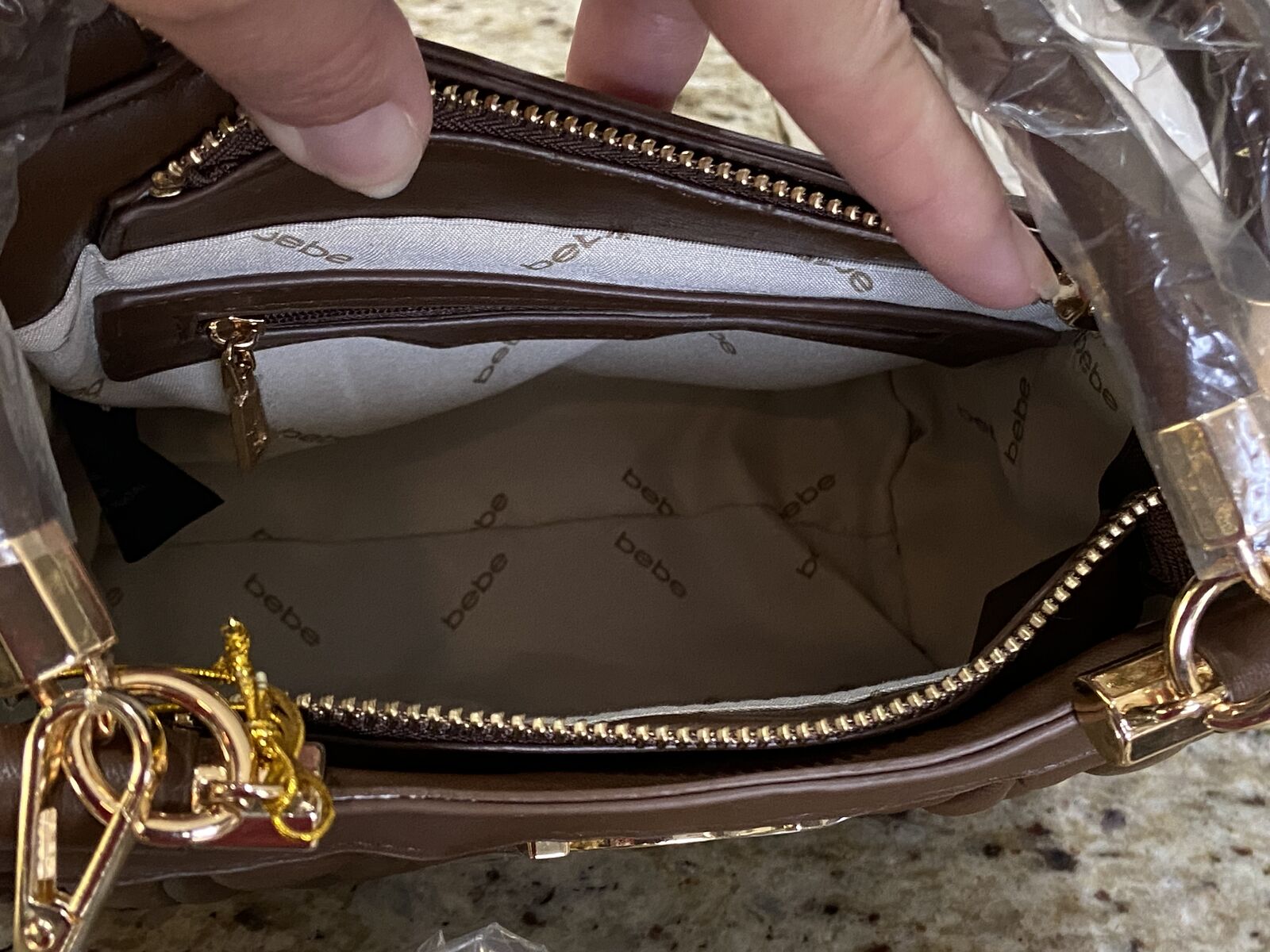 ApplePayNew with tags Bebe brown vegan leather crossbody bag. MRSP $109