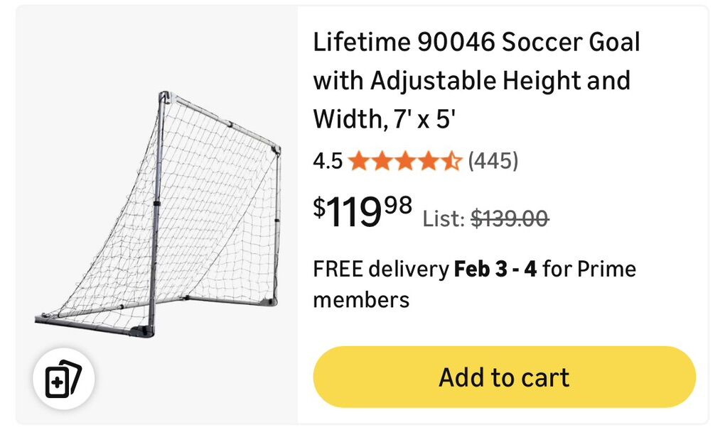 VenmoThis soccer goal standard, by Lifetime. Model # 90046.