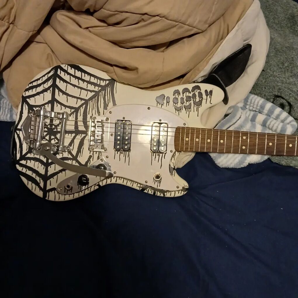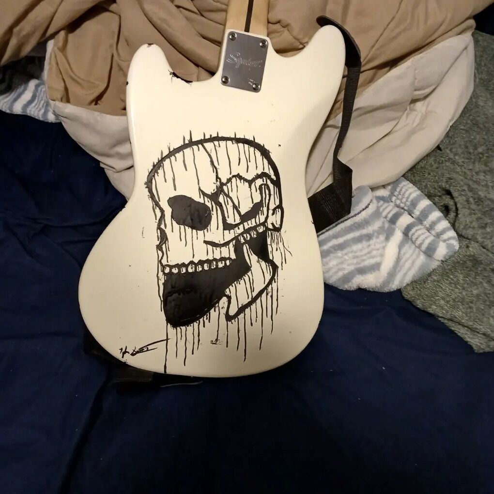VenmoThis is my discontinued fender squire mustang I am selling(or trading) along with all the cords a working amp and a distortion pedal. Everything works great I hav extra strings aswell I customized it when I first started playing but should come off. It has a few scratches but that’s all new pickups. It has some fair use but sounds amazing I’ve loved every bit of it but it’s time to move on I paid for the guitar itself 900$ but with its use I’m asking around 6-750. With the amp and distortion pedal I’m asking 850-950.