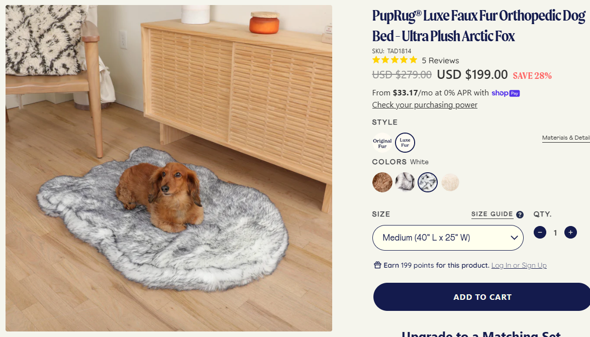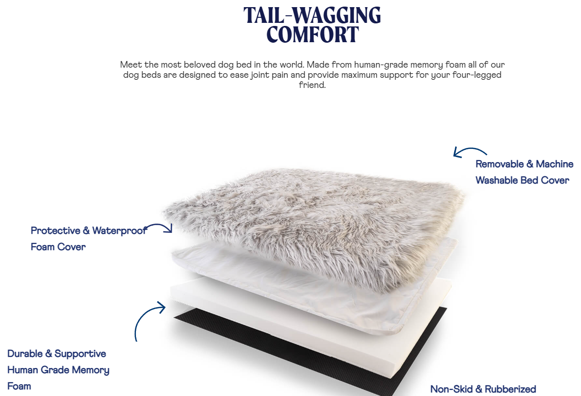 The PupRug® Luxe Faux Fur Orthopedic Dog Bed was designed to provide our best friends with the ultimate place to rest while blending into homes with its modern and luxurious design. Our luxe collection is made with extremely soft and ultra-plush faux fur for extra soothing sleep.
