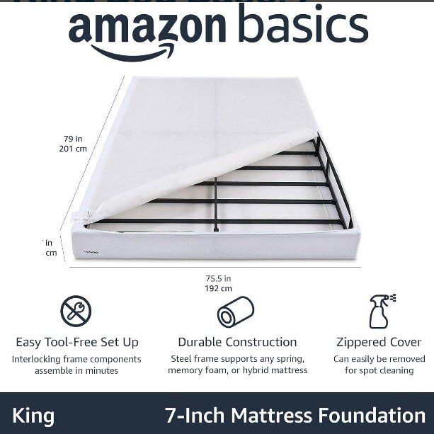 VenmoEXTRA FIRM SUPPORT: Experience comfort and reliable, quiet mattress support with this king size box spring foundation COMPATIBILITY: The versatile base works with any spring, memory foam, or hybrid mattress TOOL-FREE ASSEMBLY: Enjoy quick and easy setup with interlocking bed frame components that assemble in minutes without needing any tools DURABLE CONSTRUCTION: Features a robust steel frame with horizontal slats for long-lasting stability and strength EASY MAINTENANCE: The two-piece fabric cover is removable for convenient spot cleaning so you can keep your bed frame looking fresh and pristine.