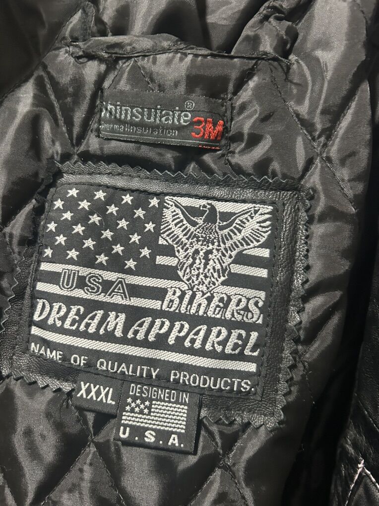 VenmoSize: Women’s - XXXL. USA Bikers Dream Apparel Classic Black Leather Motorcycle Jacket with front & rear pink inserts. Zip out 3M Thinsulate liner that includes a neck gaiter. Excellent Condition.