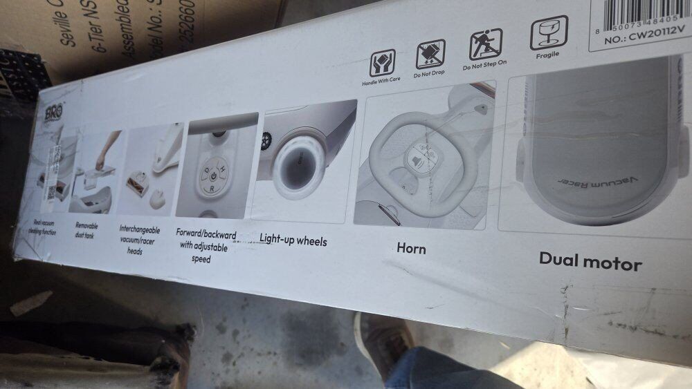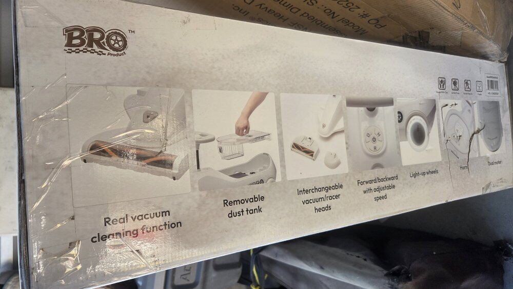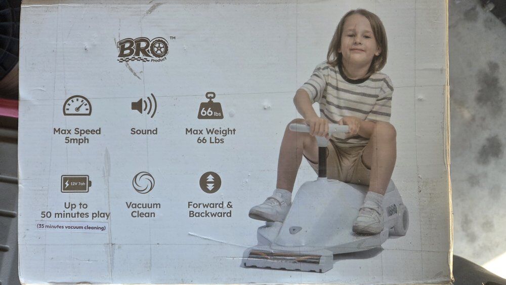 Highlights Realistic horn and vacuum sound effects for immersive play. Cool LED headlights enhance the driving experience Built-in vacuum cleaner with two suction modes for light or powerful cleaning, Combines fun driving with cleaning to promote tidiness and responsibility Assembled Dimensions: L 36.2" x W 15.6" x H 16.1"Bro 12V Vacuum Gokart Kids Ride-On