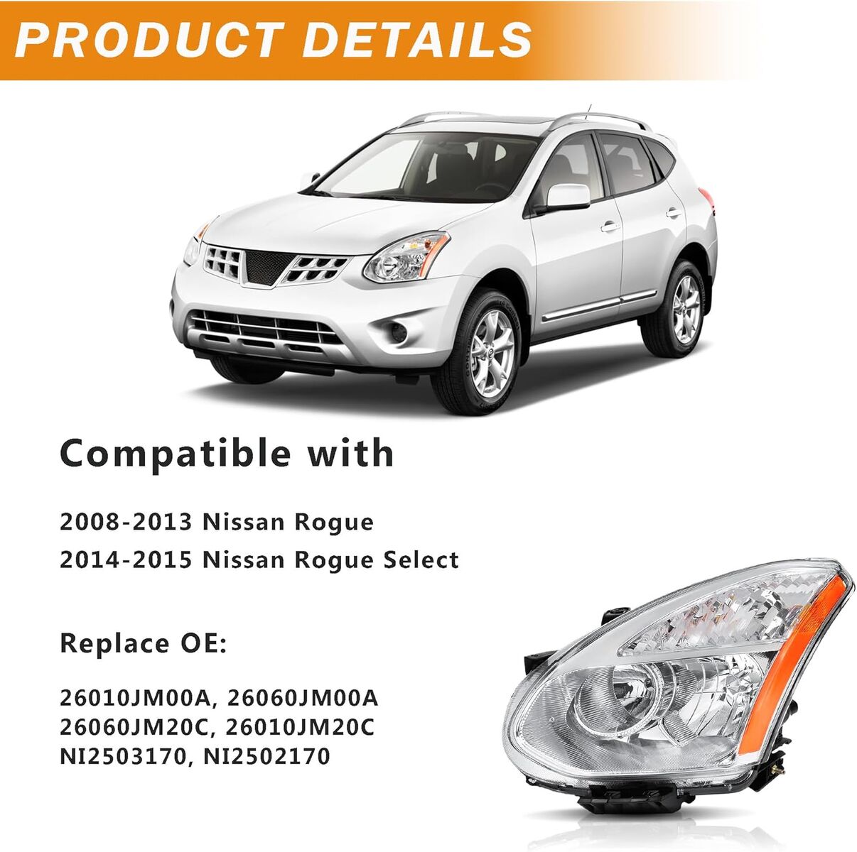 ApplePayFor 2008 2009 2010 2011 2012 2013 Nissan Rogue 2014 2015 Select Headlights Assembly Replacement Halogen Headlamp (Not for HID Model)
